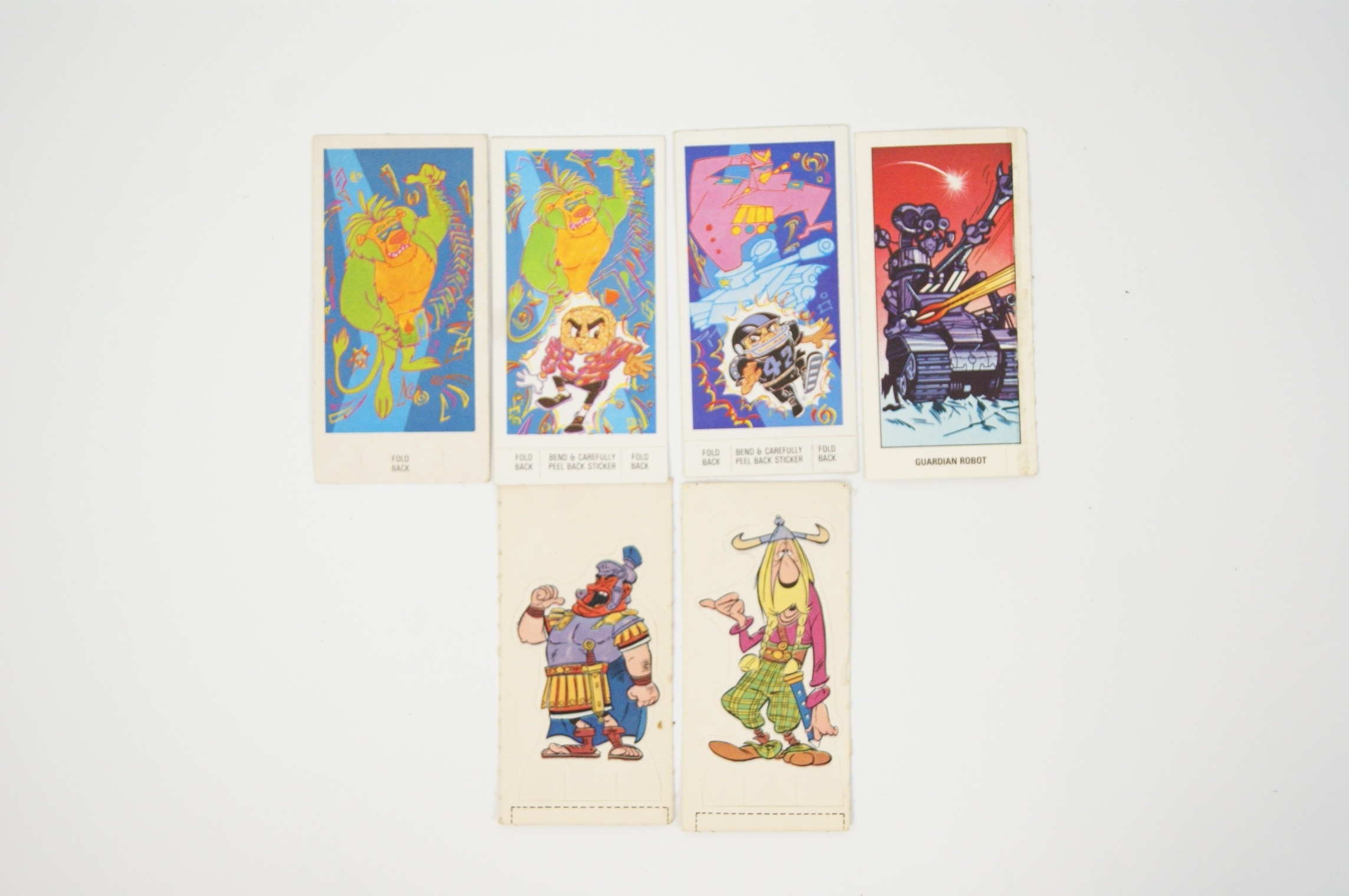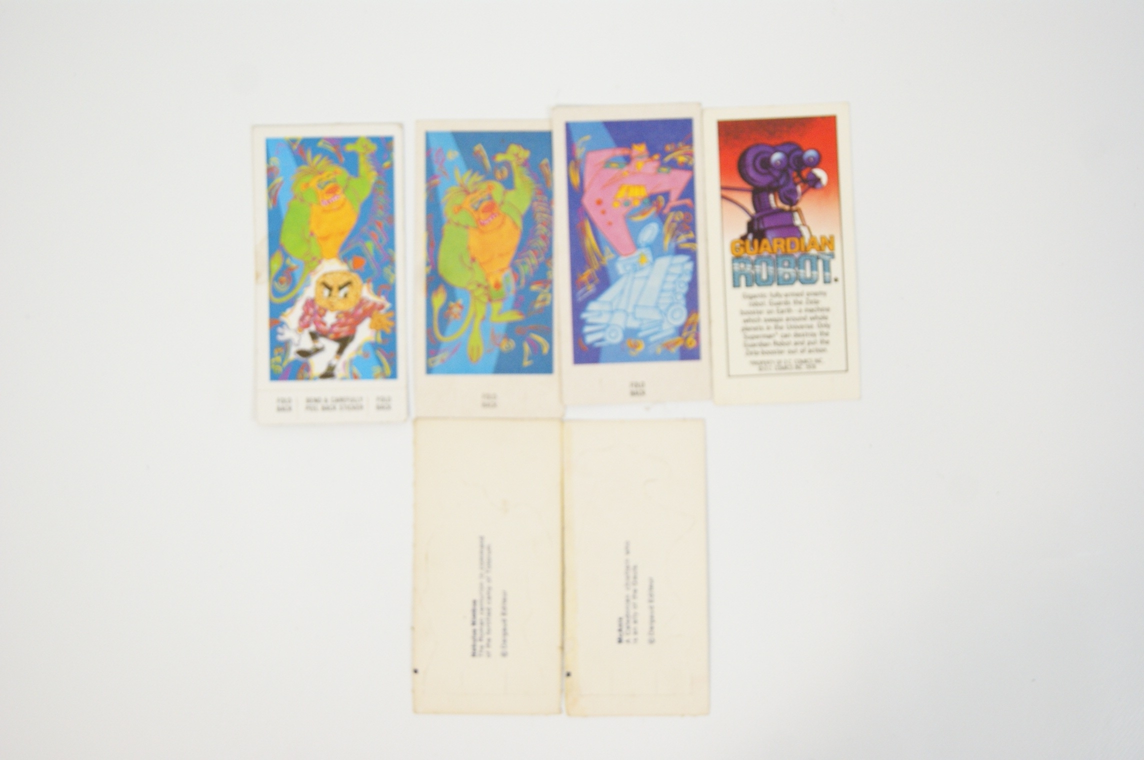 Collection of Six Vintage 1970s Trading Cards and Stickers including Asterix and DC Comics Guardian Robot