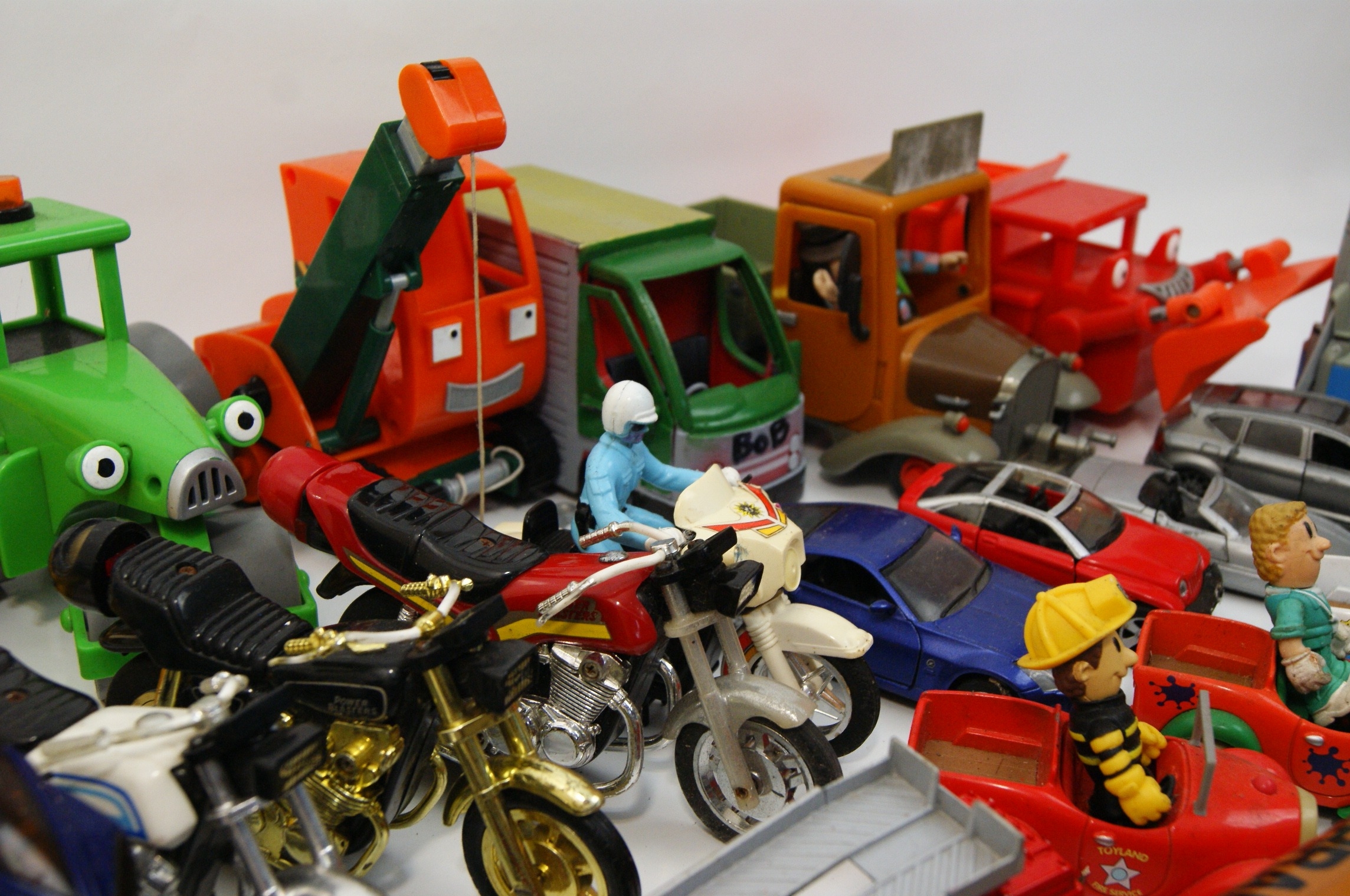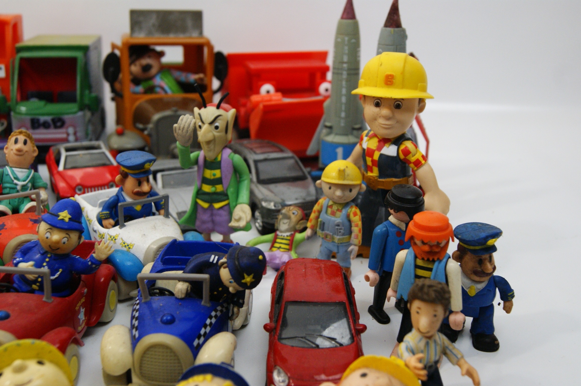 A Collection of Character Toys and Vehicles including Bob the Builder, Thomas & Friends, and Postman Pat