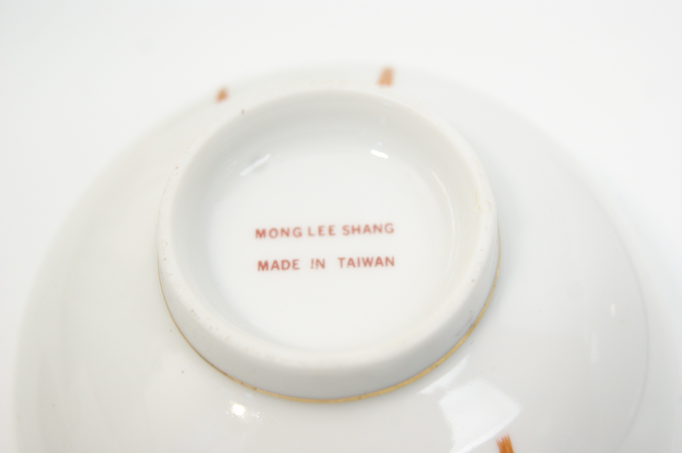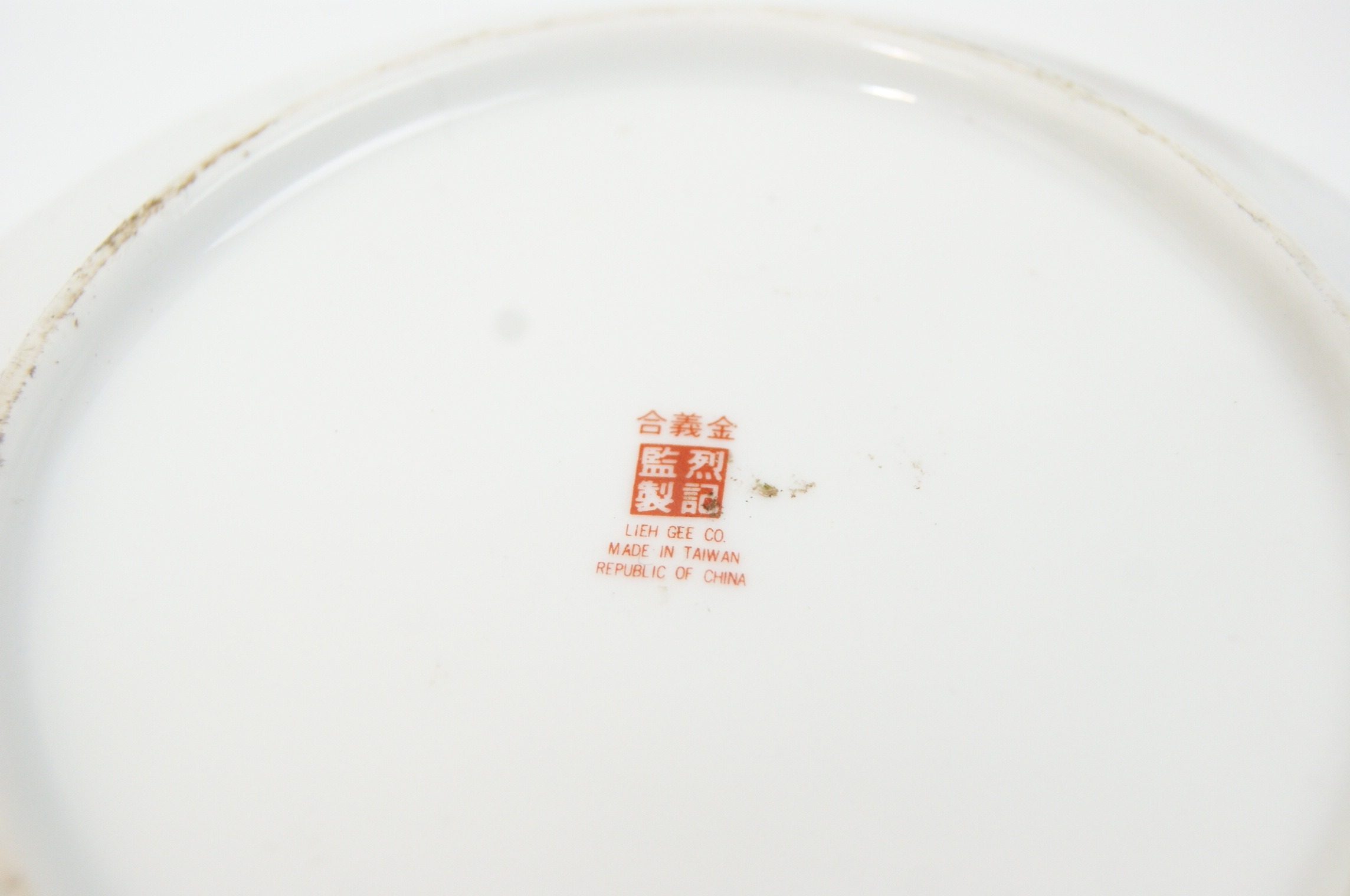 A mid to late 20th-century Taiwanese porcelain set comprising one large serving bowl and six smaller bowls. The pieces are decorated with transfer-printed motifs of traditional Chinese lanterns, including a spherical lantern featuring the Double Happiness (囍) symbol and an ornate rectangular palace lantern. The rims of all bowls are finished with a thin gilt band. The large bowl features a red stamped mark to the base with the characters He Yi Jin (合義金) arranged horizontally above a square seal containing the characters Lieh Gee Jian Zhi (烈記監製). Below the seal is the text Lieh Gee Co. Made in Taiwan Republic of China. The smaller bowls are marked Mong Lee Shang Made in Taiwan. Dimensions: Not provided.