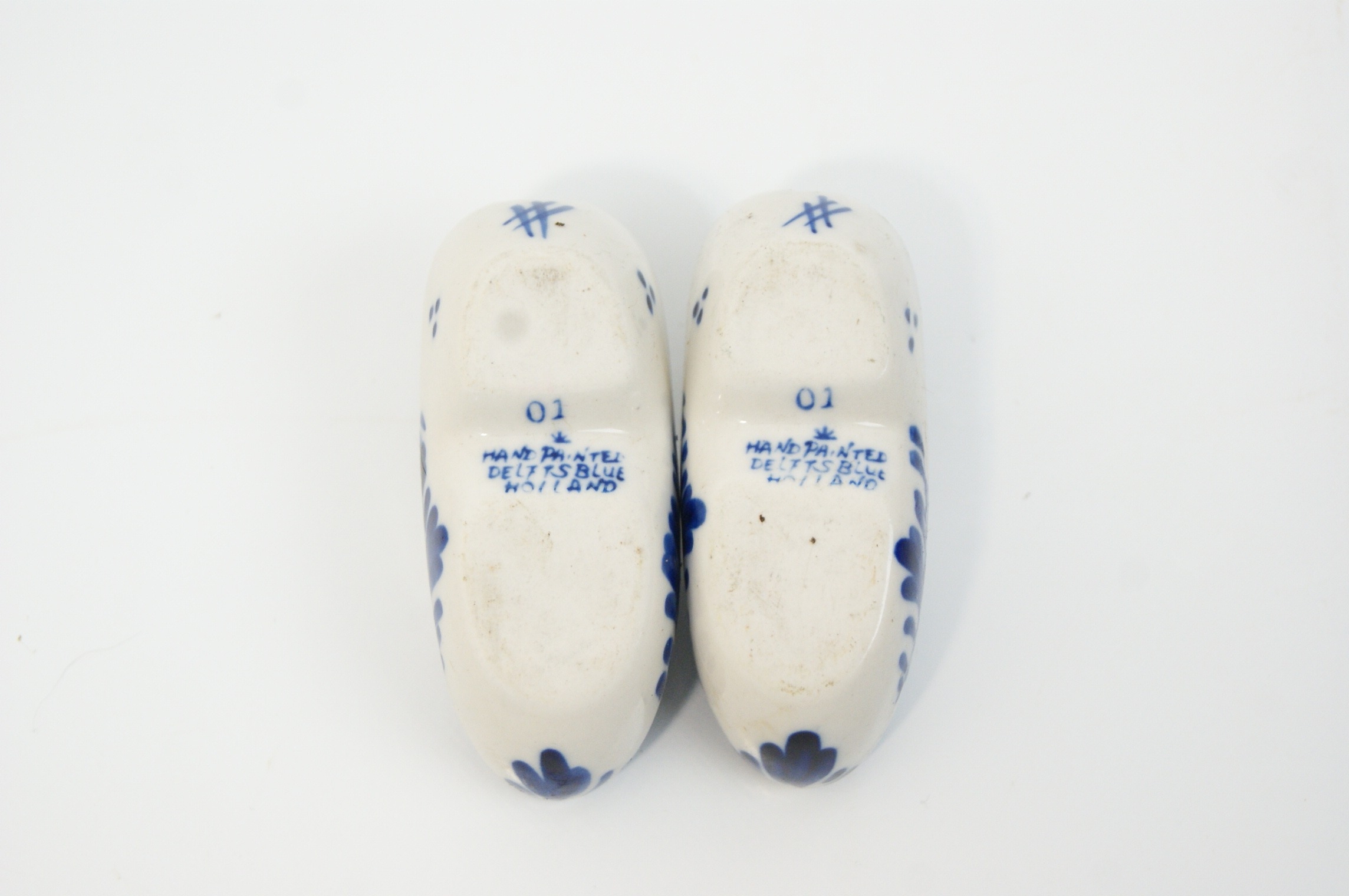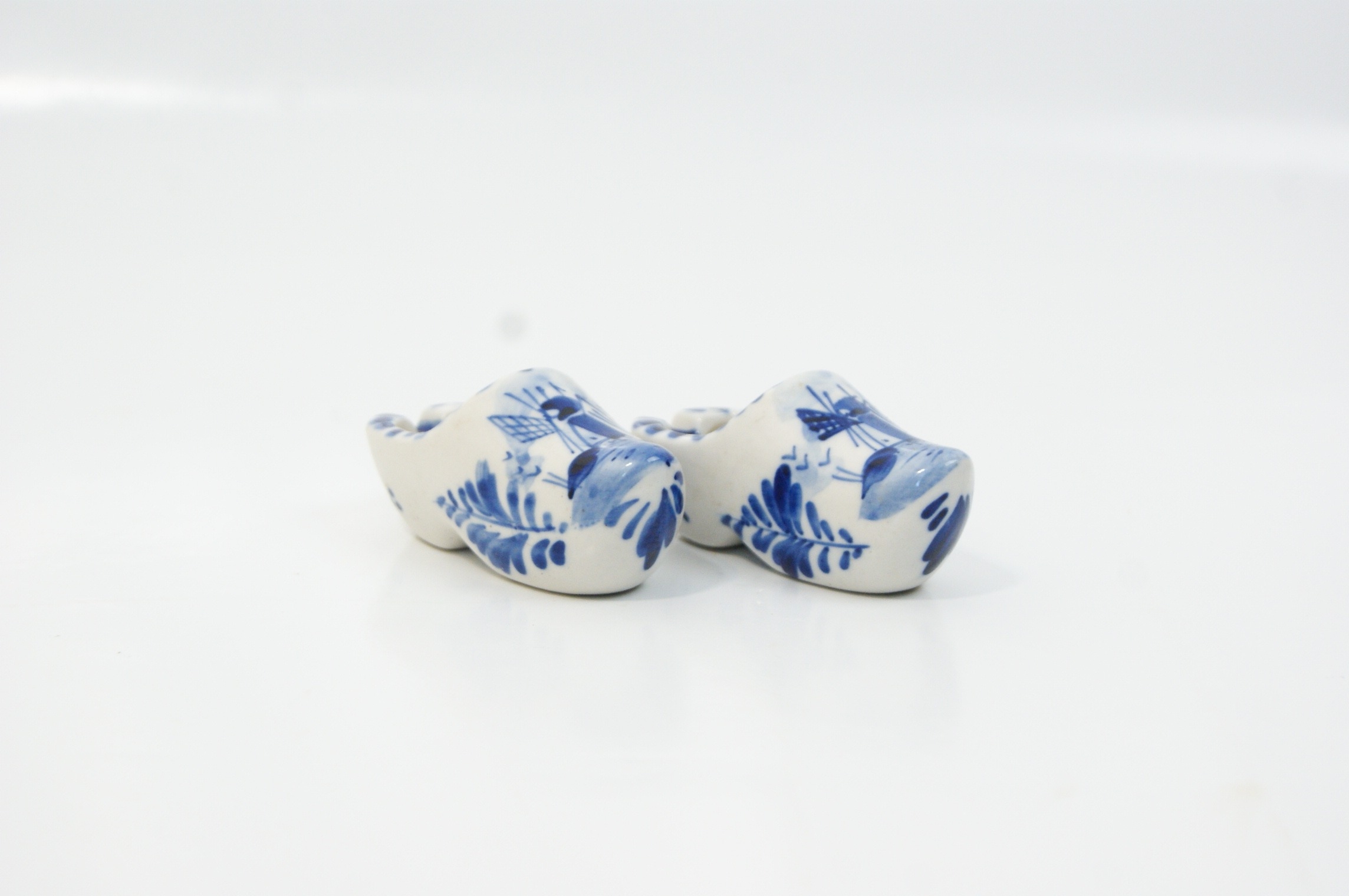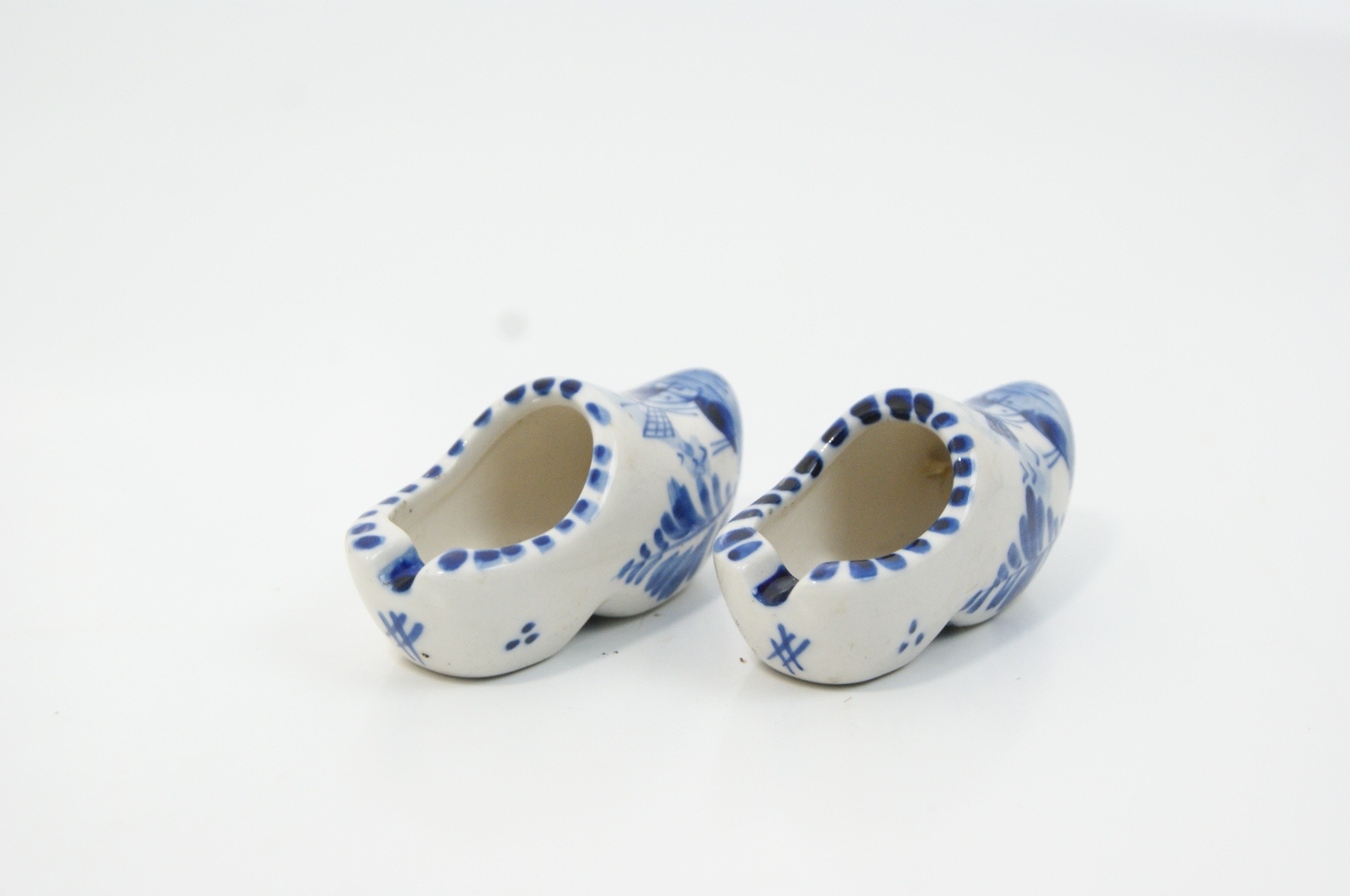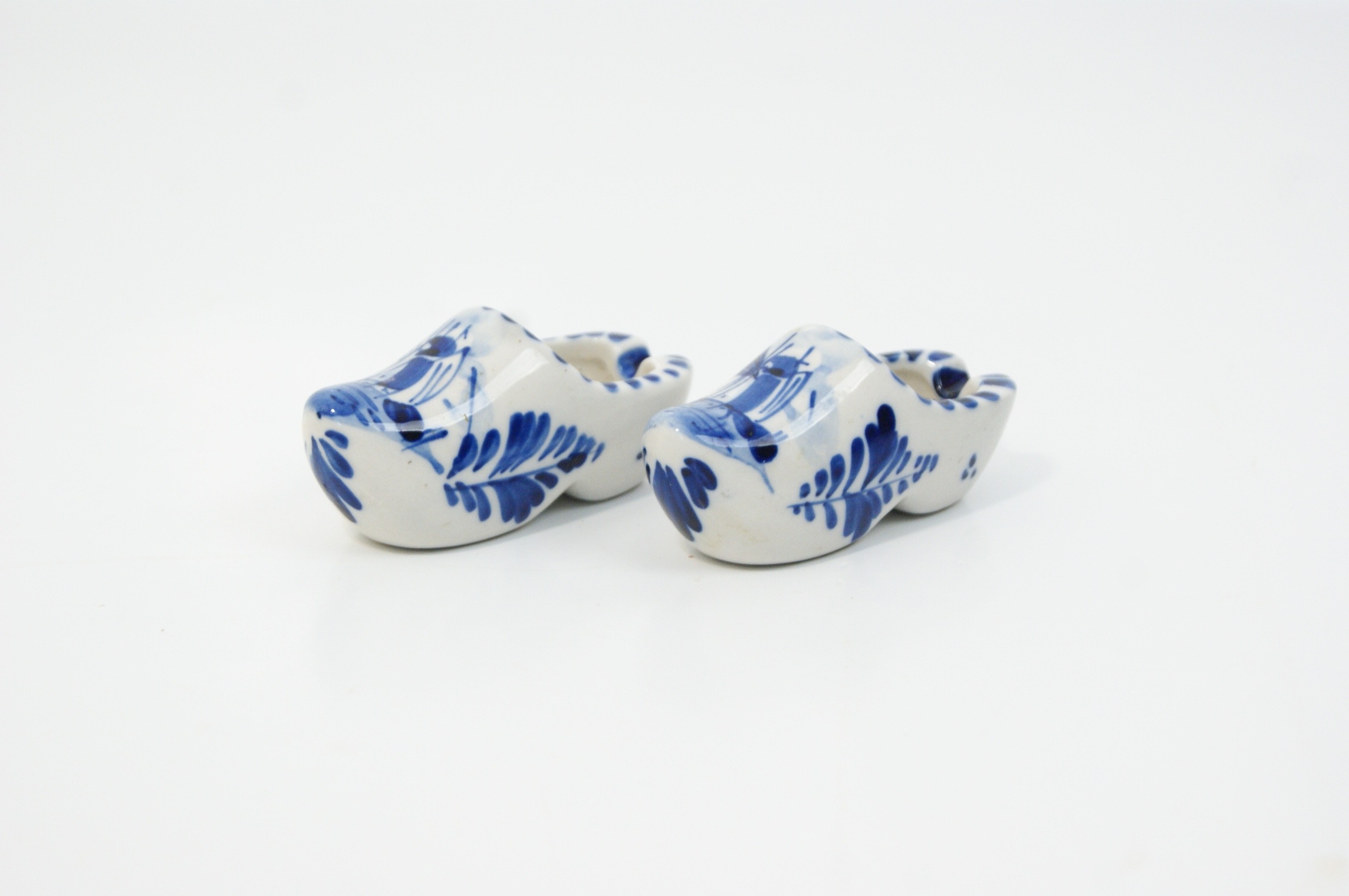A Pair of Delfts Blue Hand-Painted Miniature Ceramic Clogs