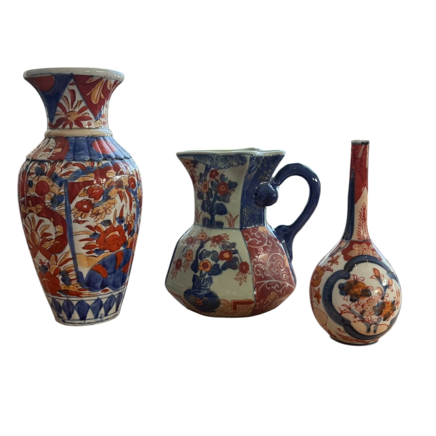 English Ironstone Three-Piece Vessel Collection, Imari Style, Late 19th Century