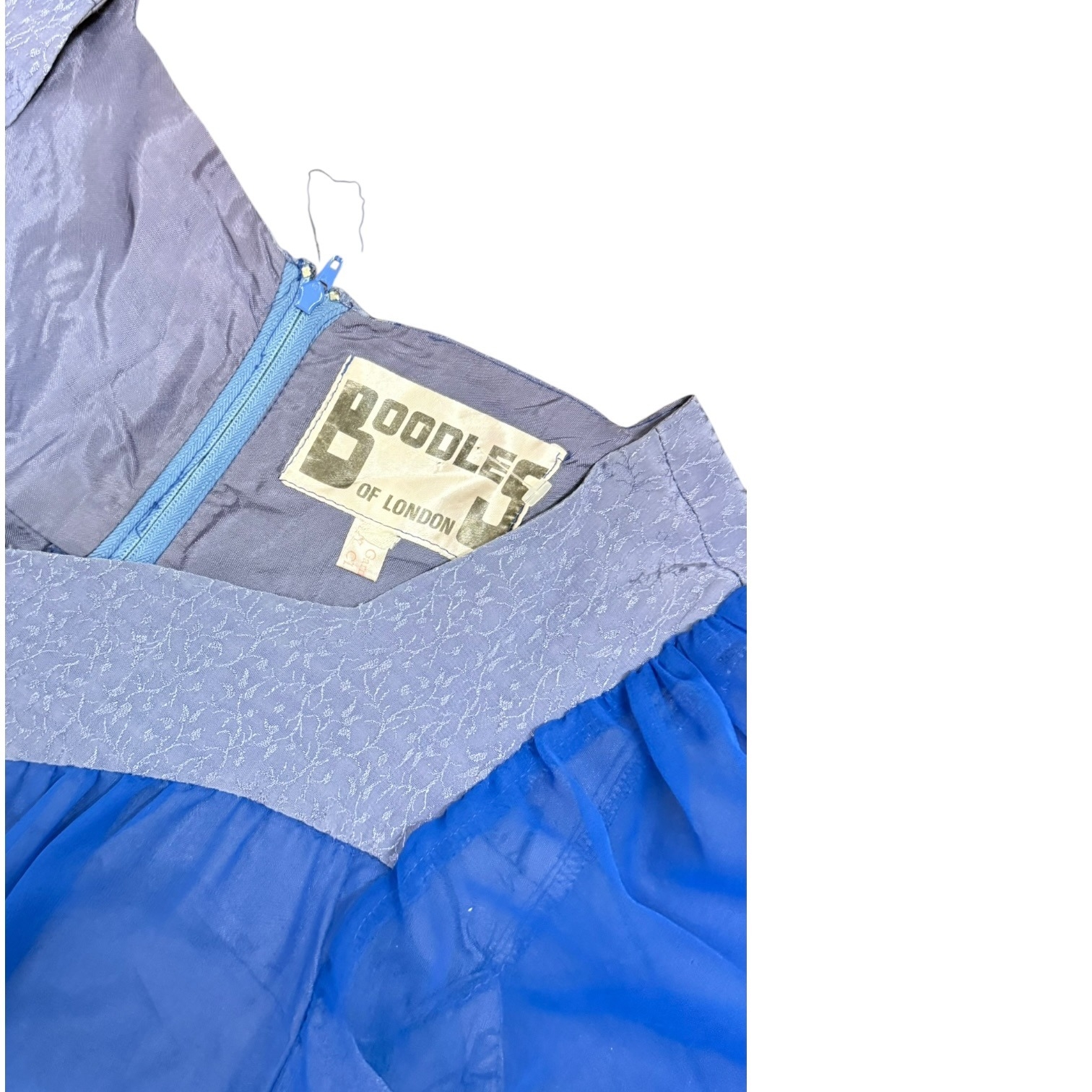 A Vintage Boodles of London Royal Blue Tiered Chiffon-Style Dress