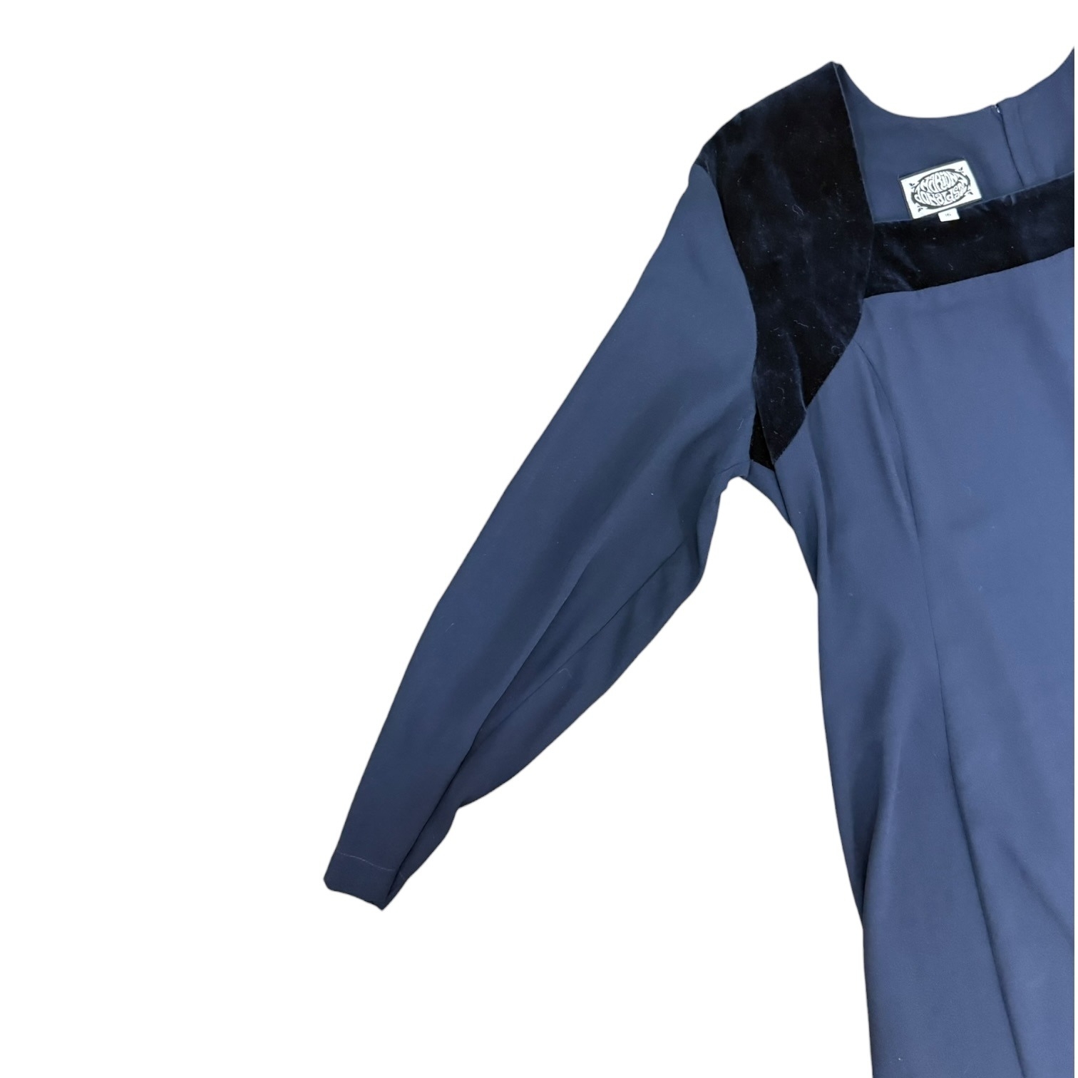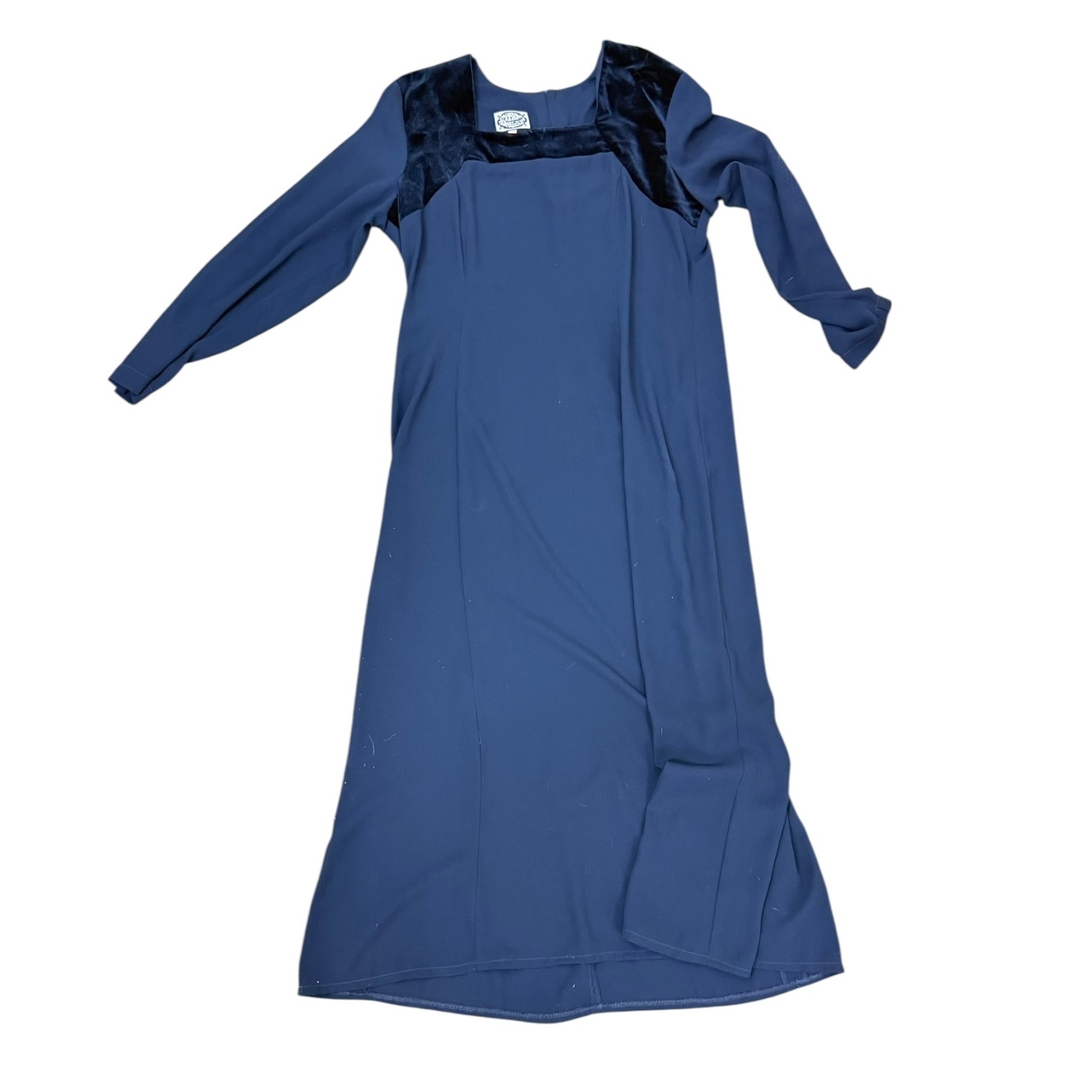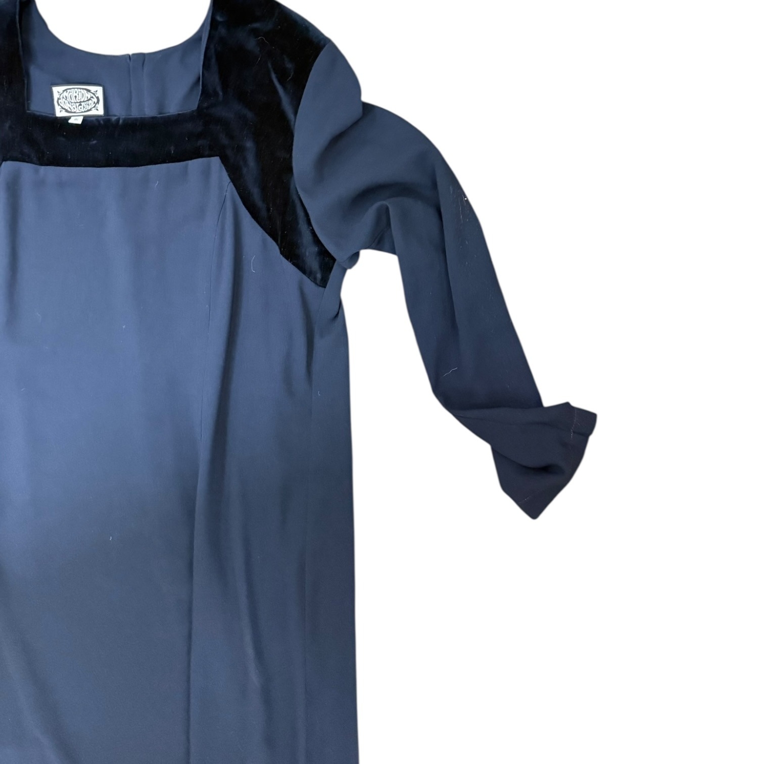 A Vintage Marion Donaldson Navy Blue Maxi Dress with Velvet Panels
