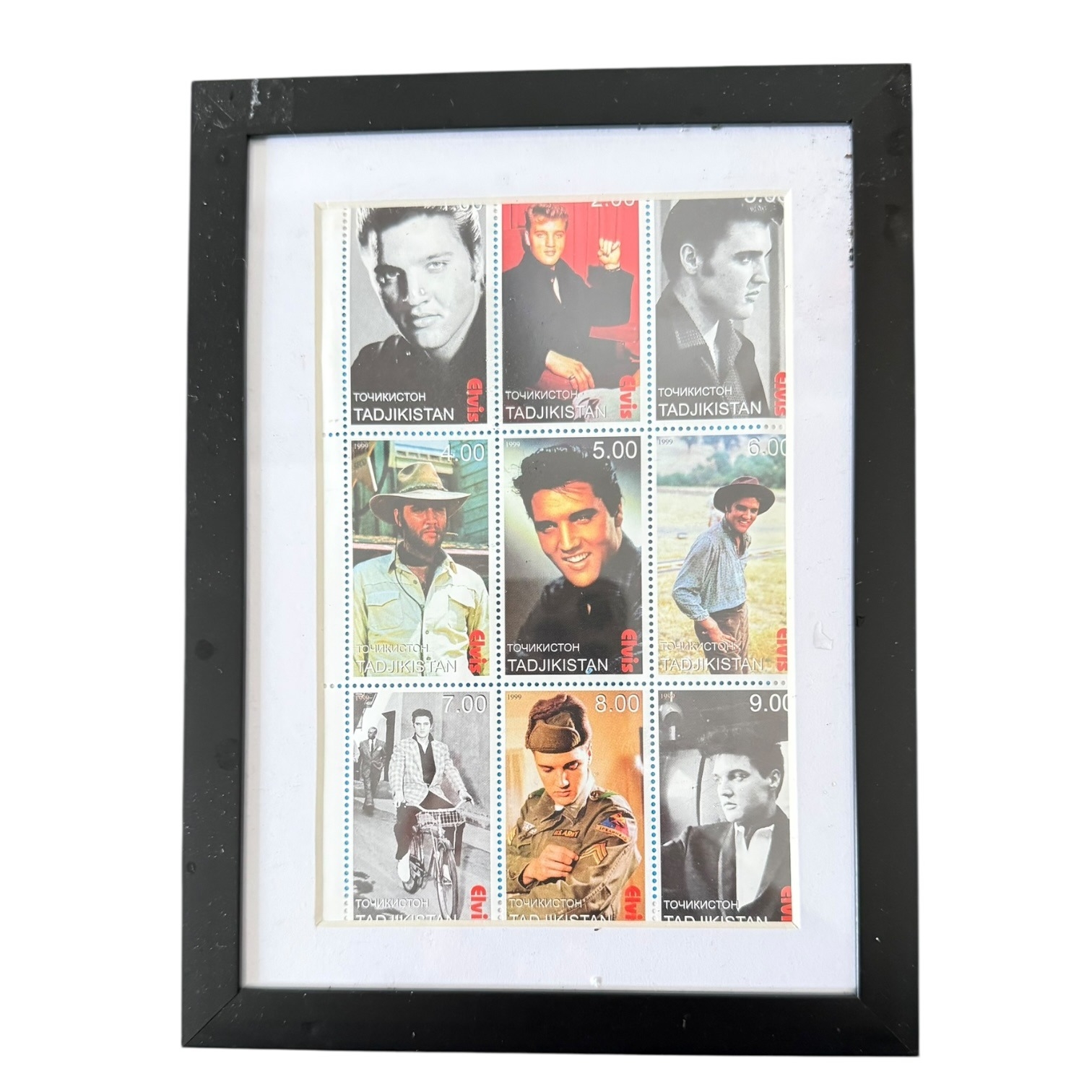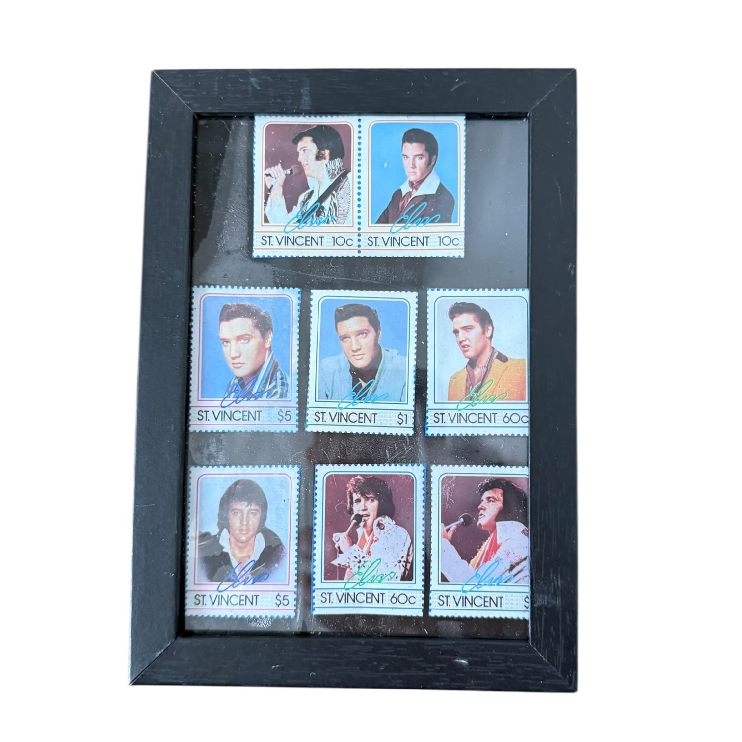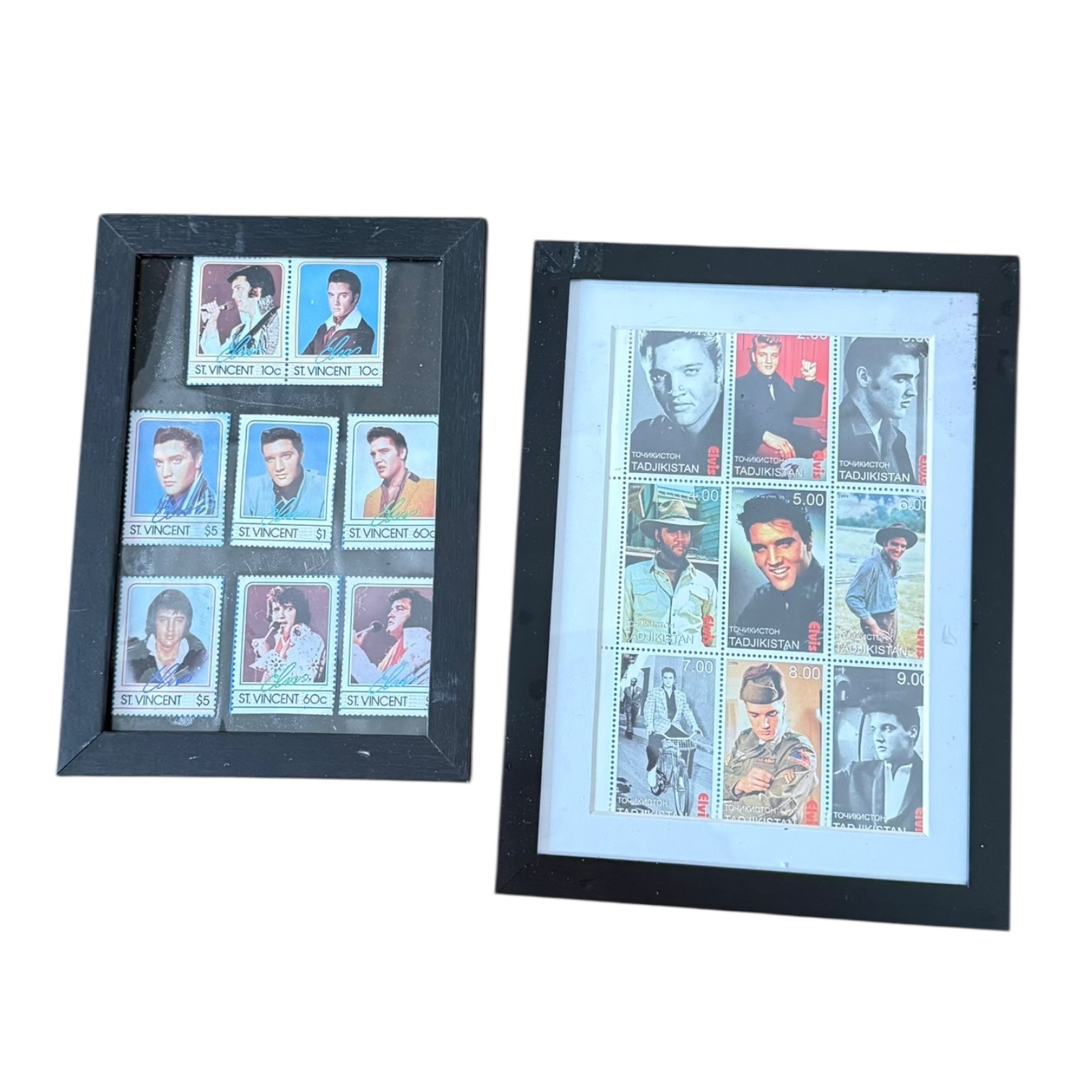A Pair of Framed Elvis Presley Commemorative Stamp Displays from St. Vincent and Tajikistan