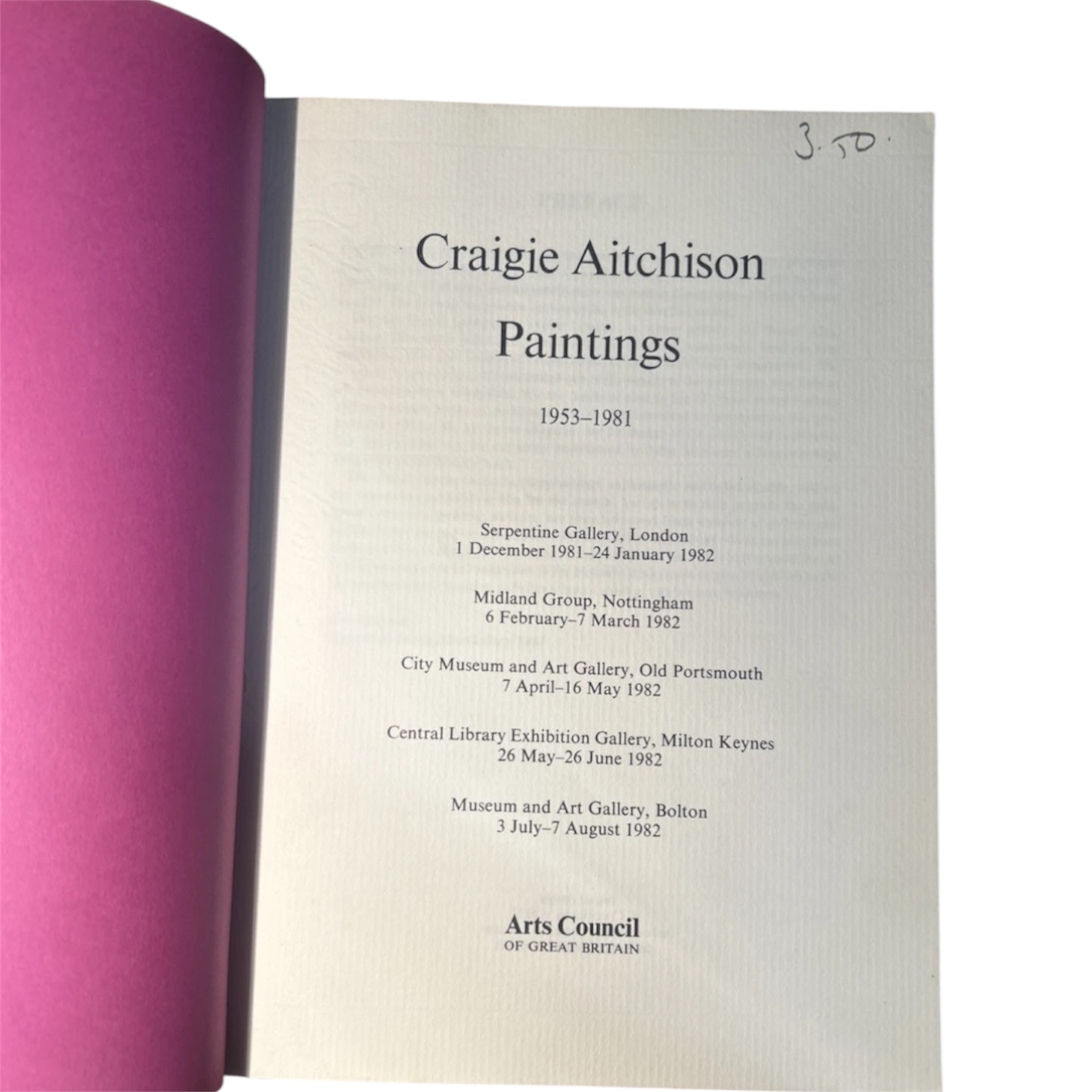 Rare original exhibition catalogue published for the Craigie Aitchison retrospective, 1981–82, issued by the Arts Council of Great Britain to accompany exhibitions at the Serpentine Gallery, London, and touring venues including Nottingham, Portsmouth, Milton Keynes and Bolton. The catalogue illustrates key works from 1953–1981 and includes examples of Aitchison’s celebrated crucifixion and landscape paintings.