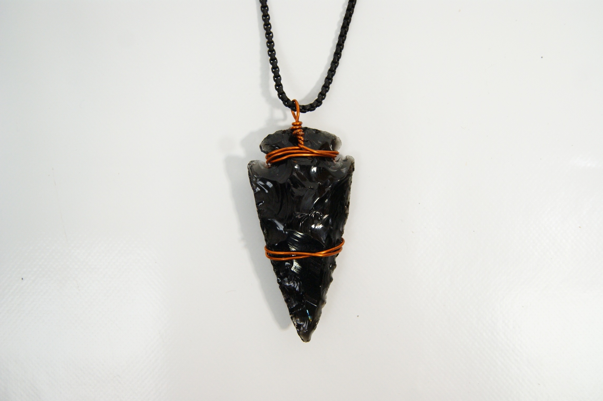 Black Obsidian Arrowhead Pendant Necklace Copper-wire Wrapped