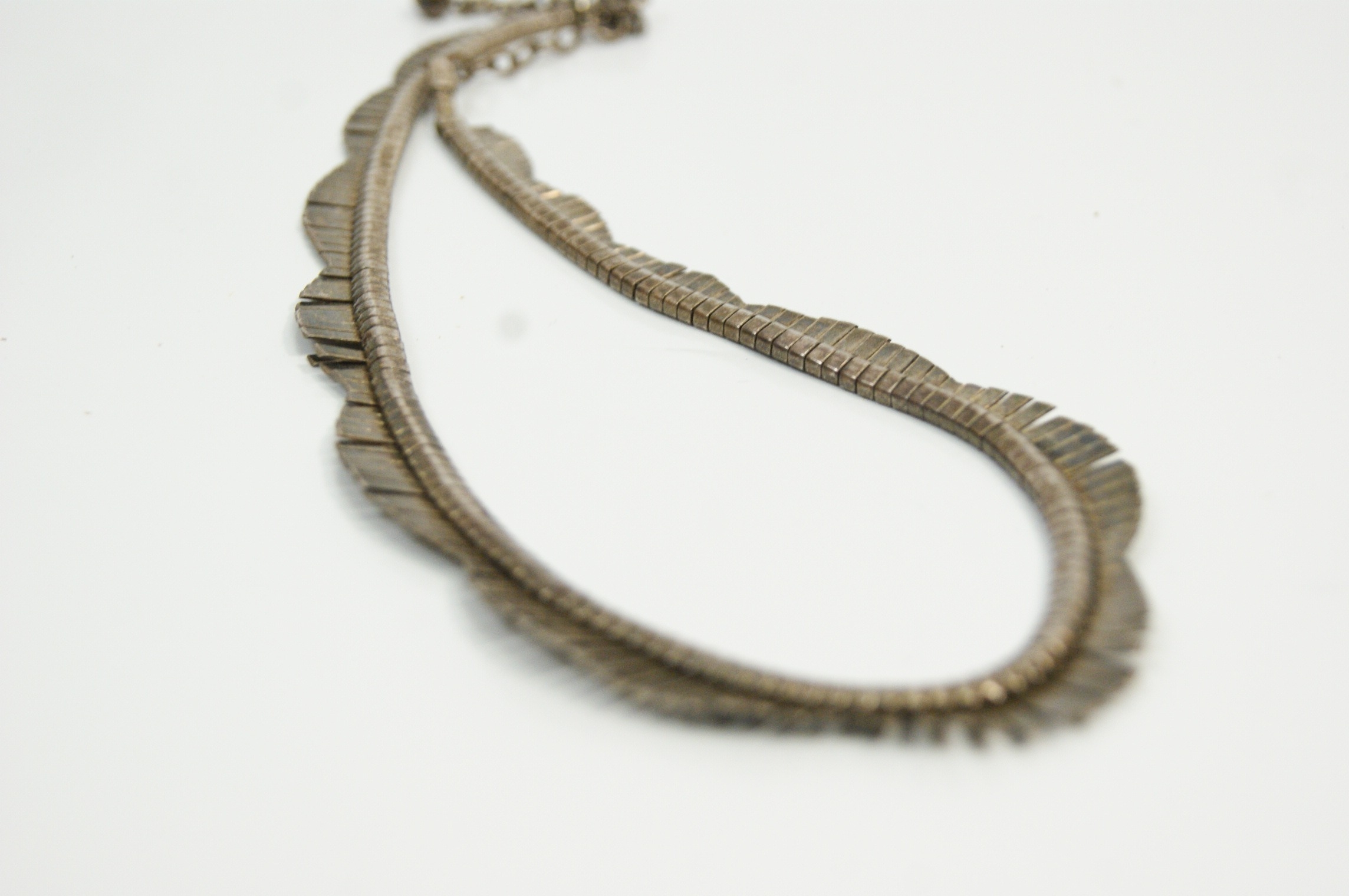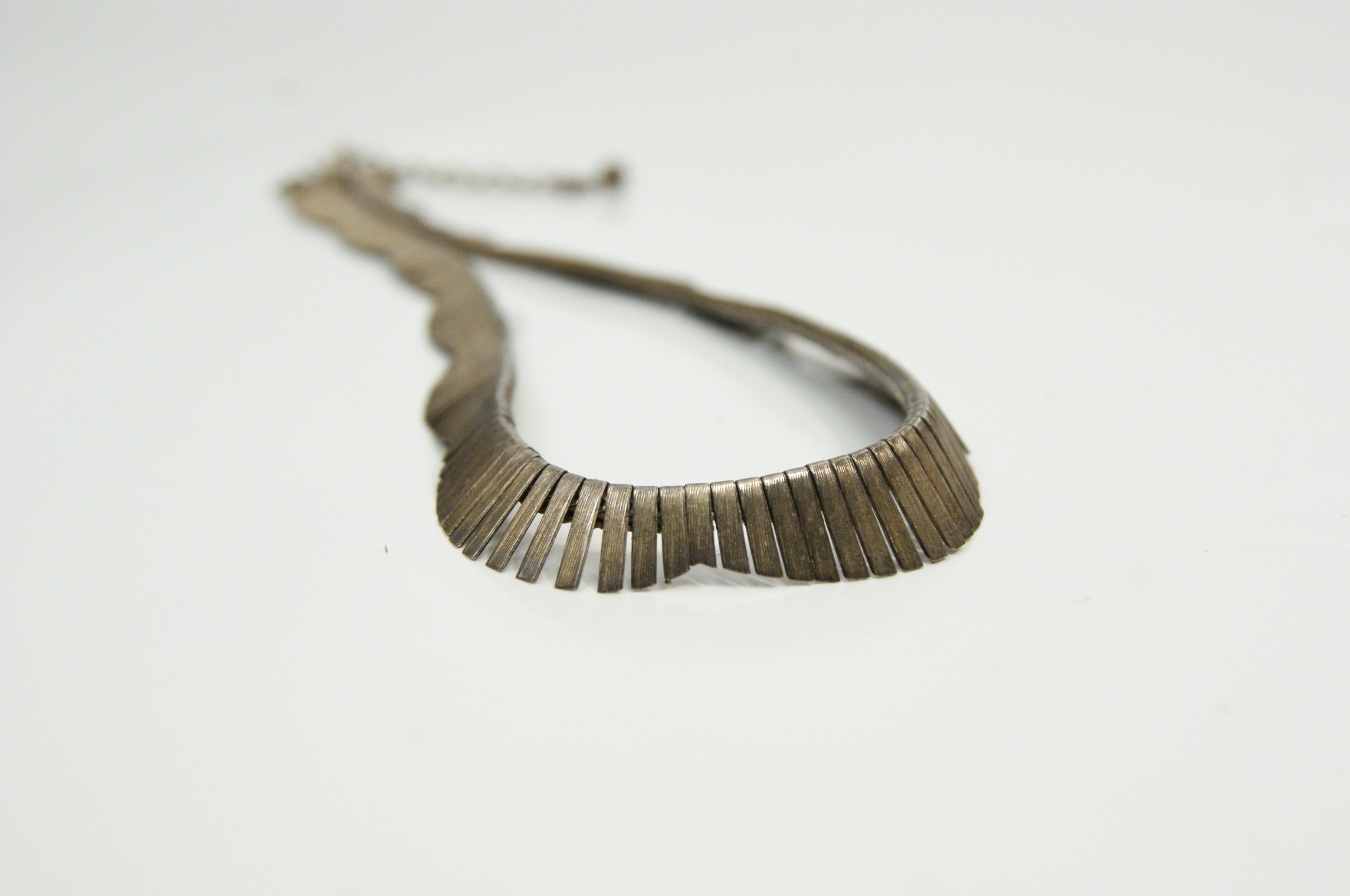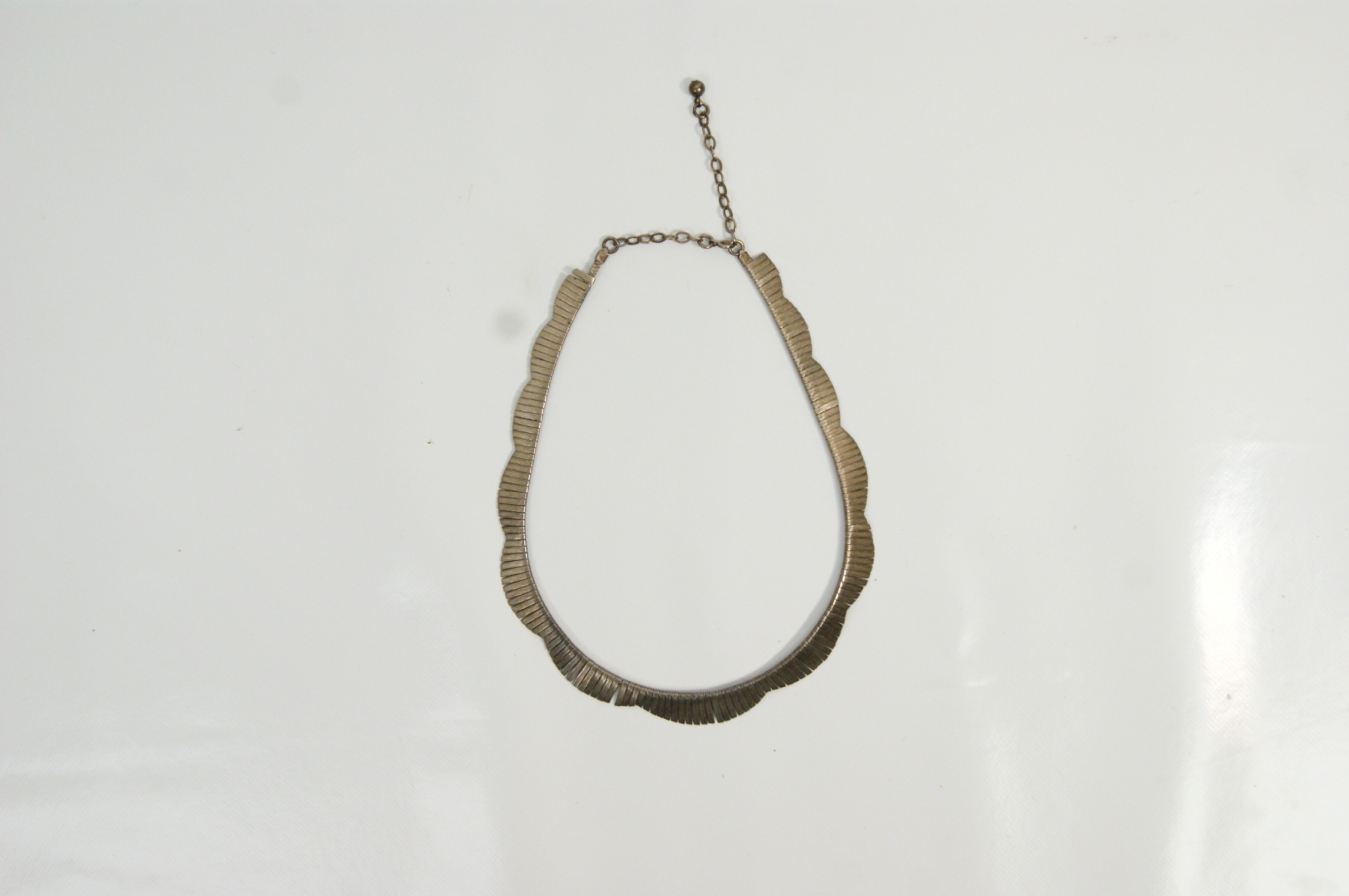 Sterling silver scalloped fringe collar necklace, Mid-Century Modern Style