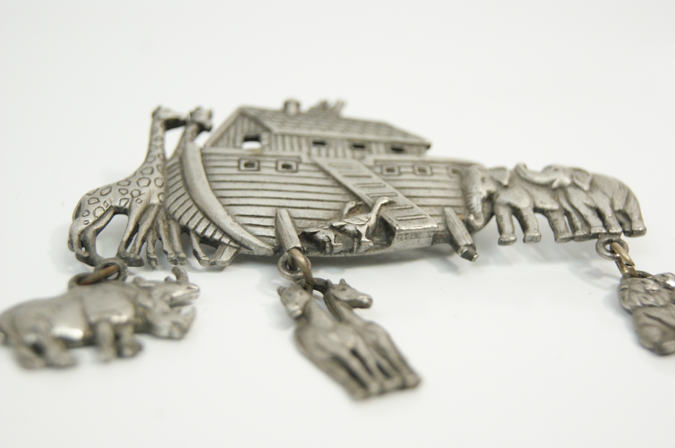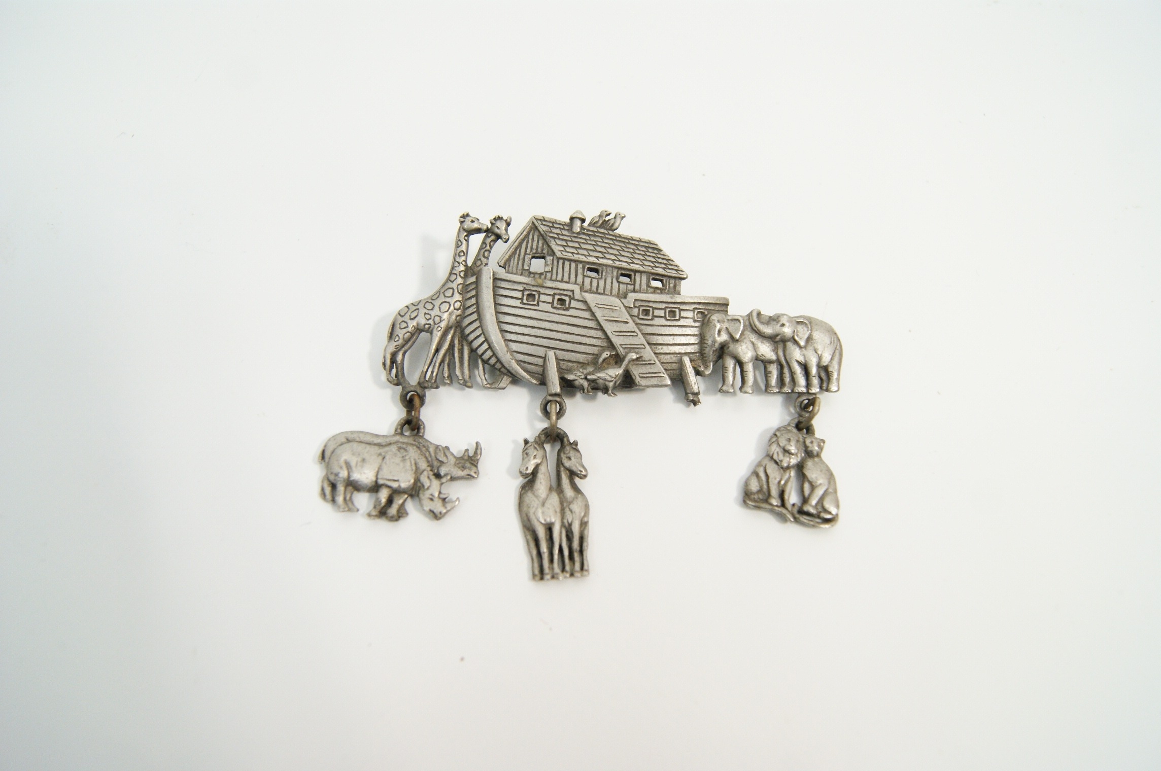 Pewter Noah’s Ark Figural Dangle Brooch by JJ