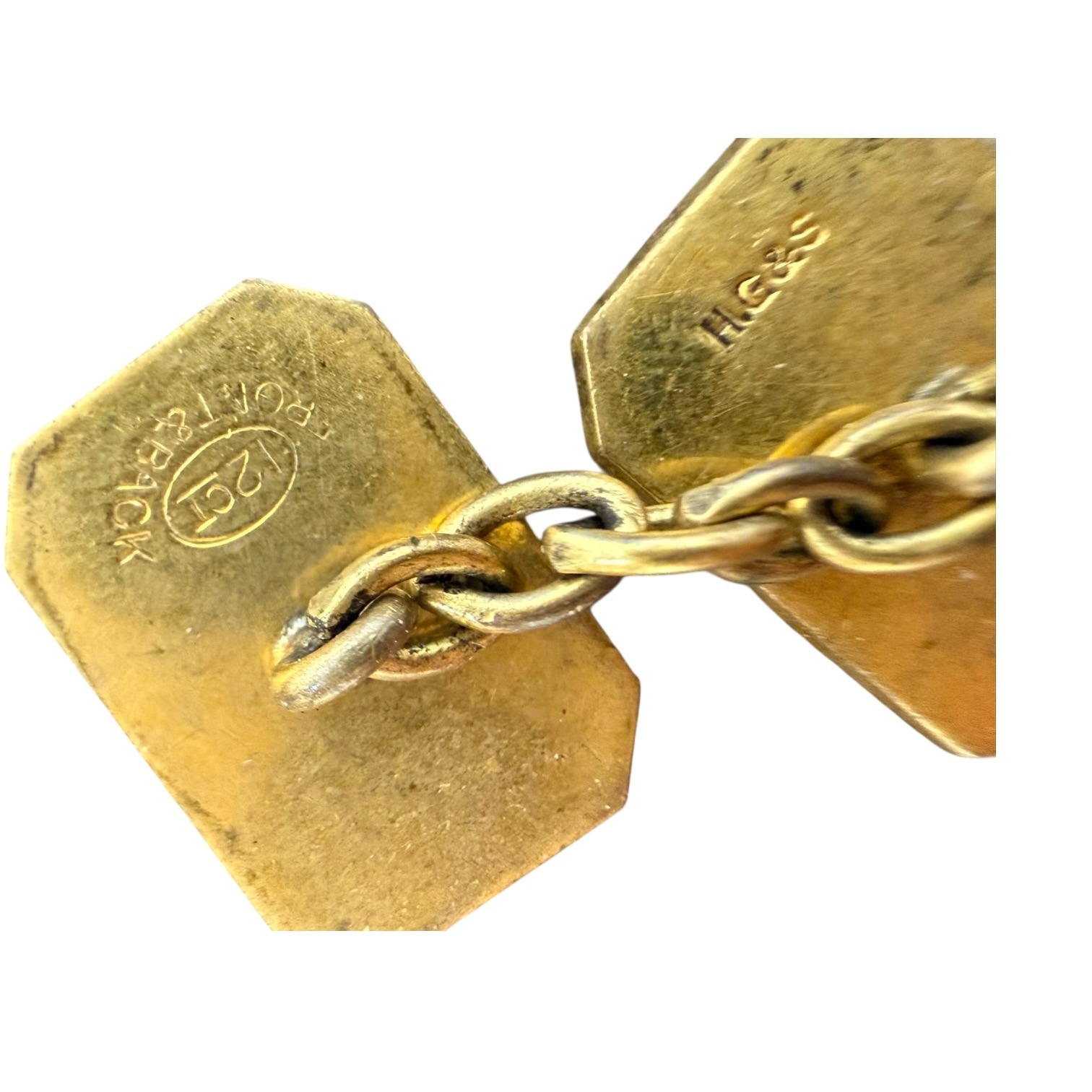 A Pair of Vintage 12ct Front and Back Engine-Turned Cufflinks by H. G & S