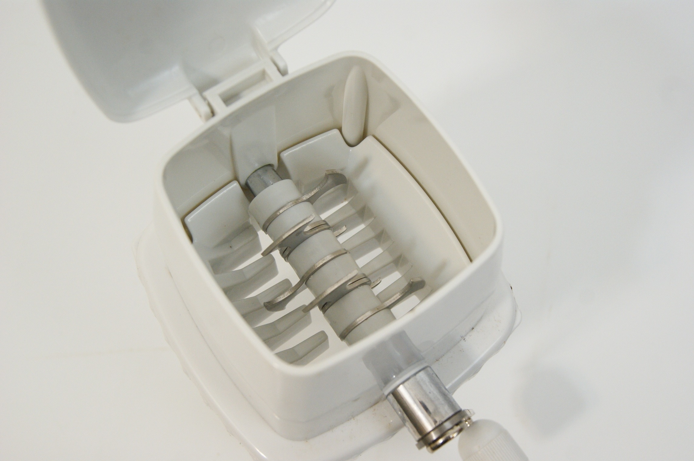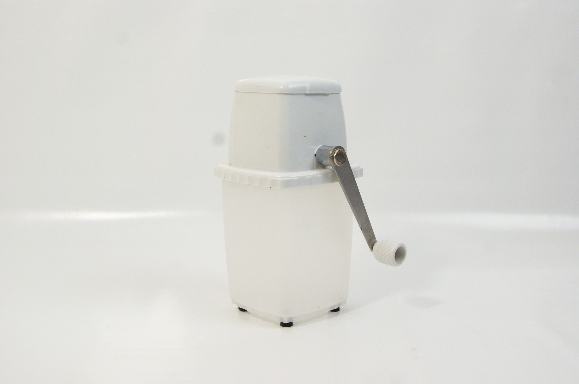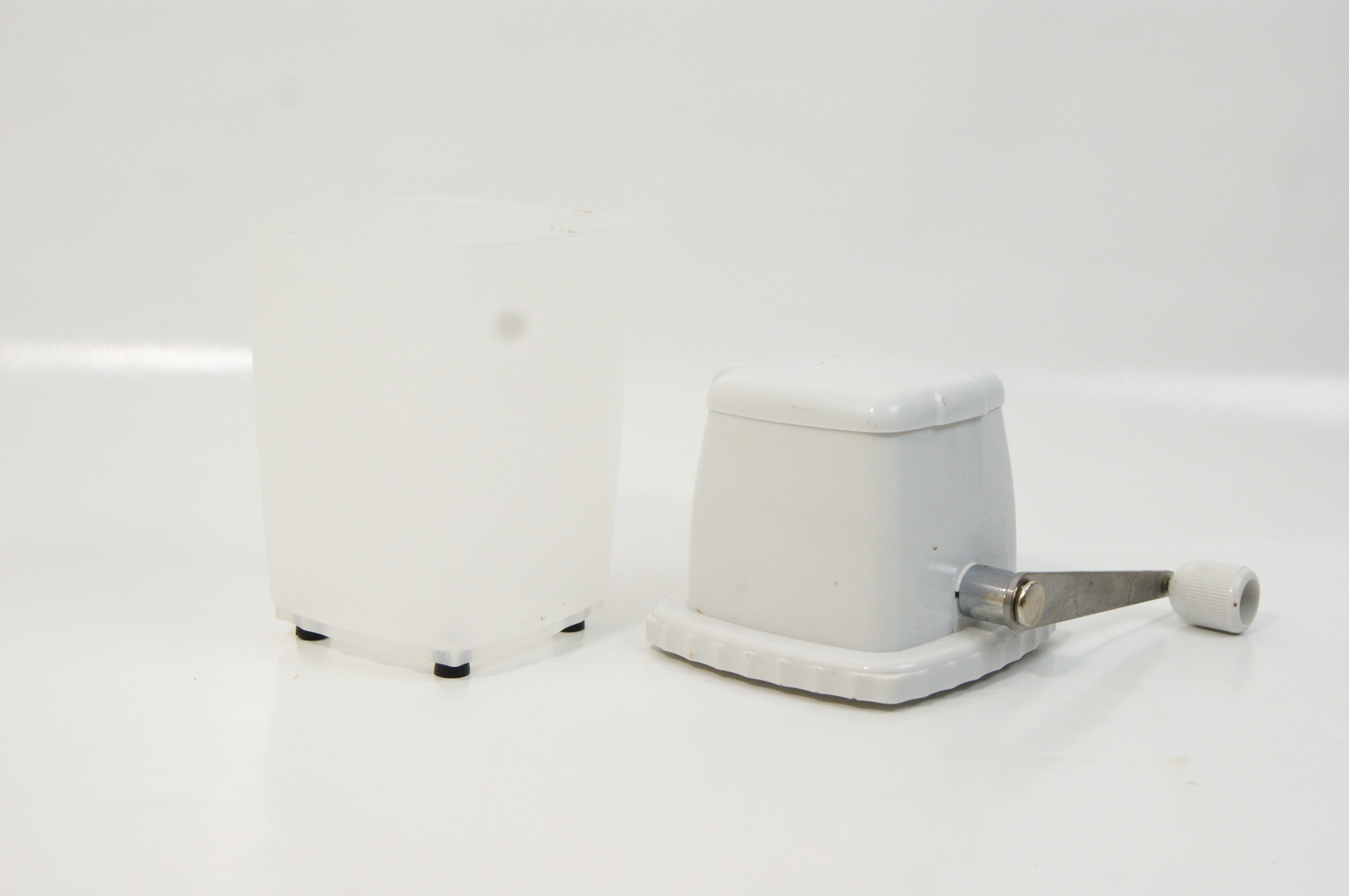 A Manual Ice Crusher, Mid-to-Late 20th Century, White Plastic and Metal