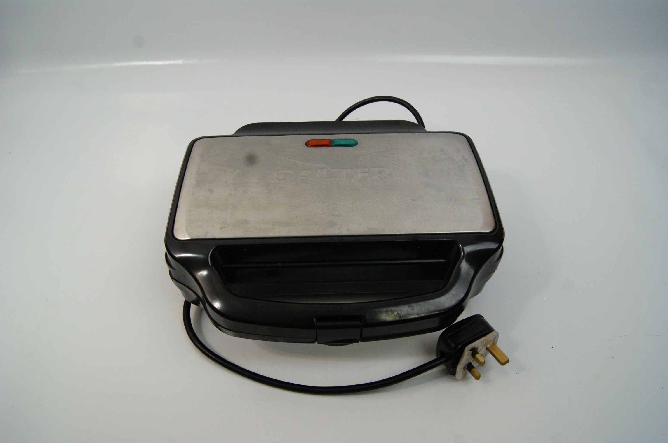 A Trio of Kitchen Appliances Comprising a Breville Kettle Cookworks Toaster and Salter Sandwich Maker