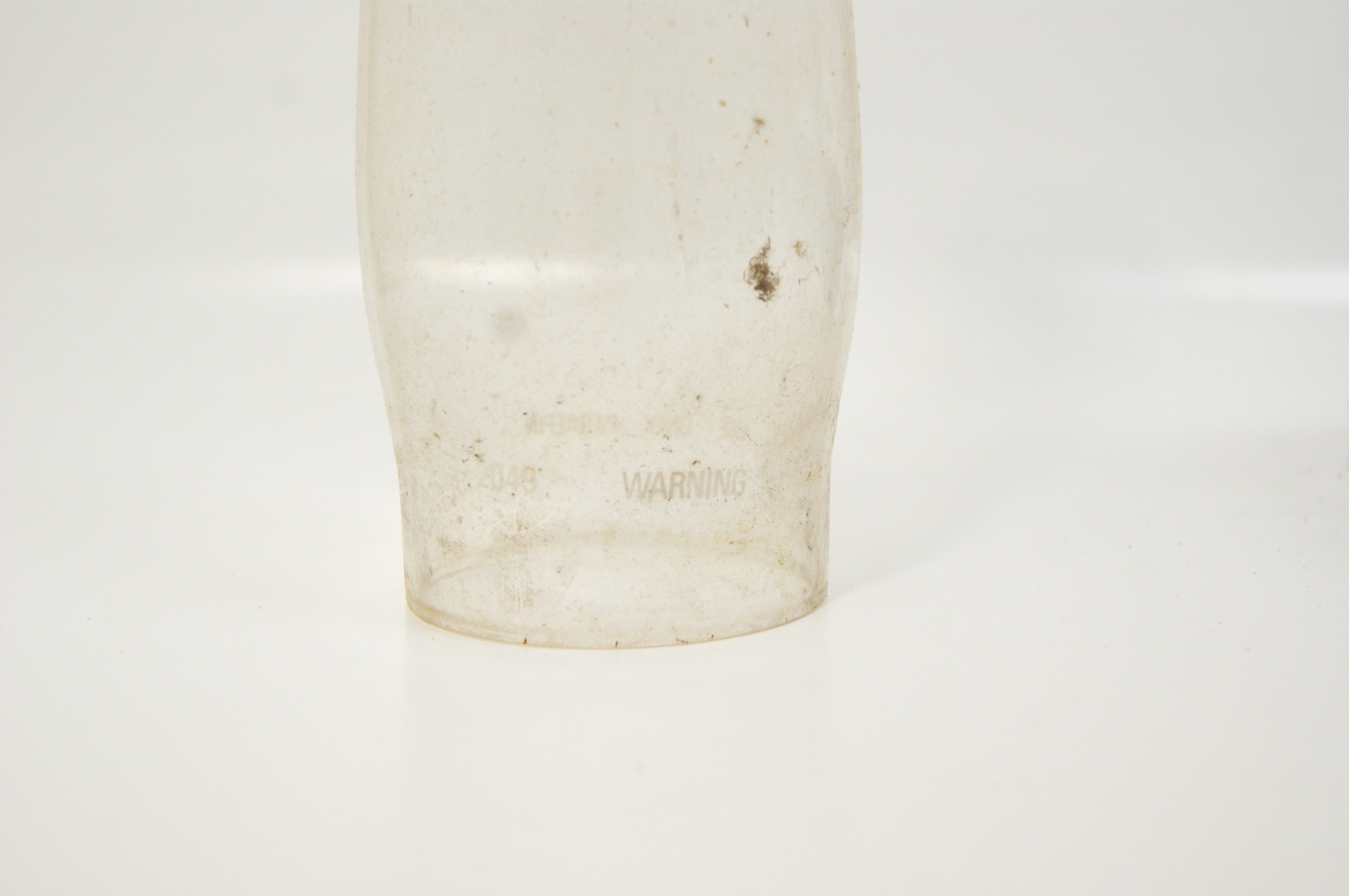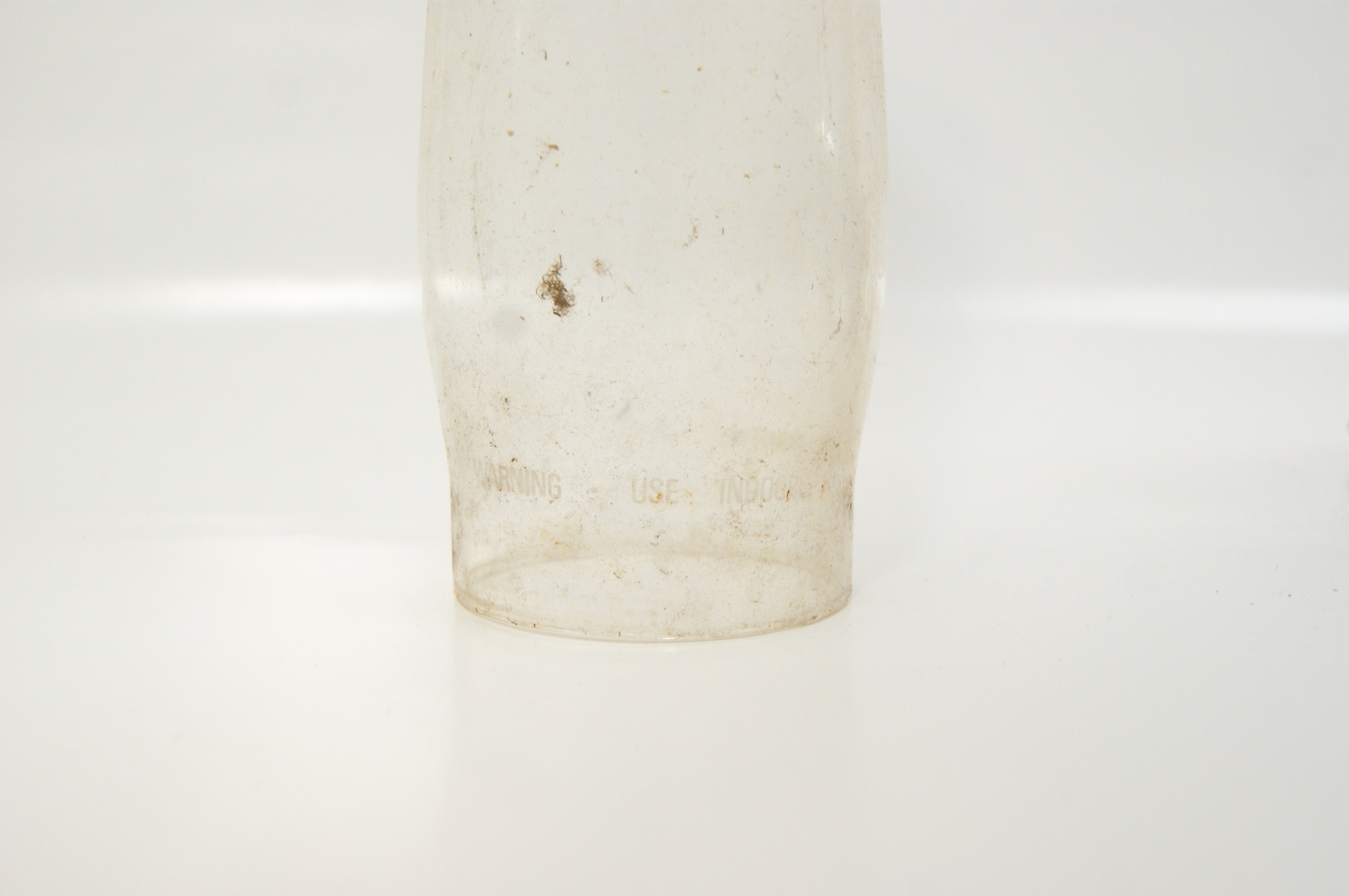 An Aladdin Genie III kerosene mantle shelf lamp, featuring a nickel-plated metal fount and a matching burner assembly. This non-electric oil lamp is equipped with a tall, slender clear glass chimney, which bears the Aladdin maker’s mark and safety warnings. The burner assembly includes the crown and mantle support frame, consistent with the Aladdin Model 23 or similar mantle lamp designs. The fount includes the original filler cap. This item is a traditional fuel-burning lamp and has not been converted for electrical use. Height: 60 cm, Diameter: 16 cm.