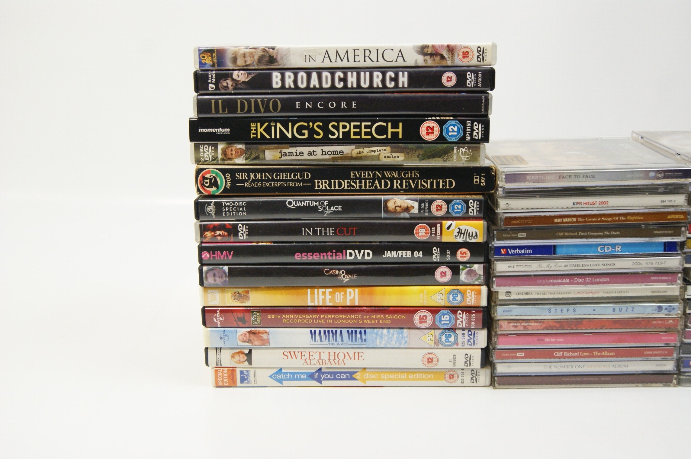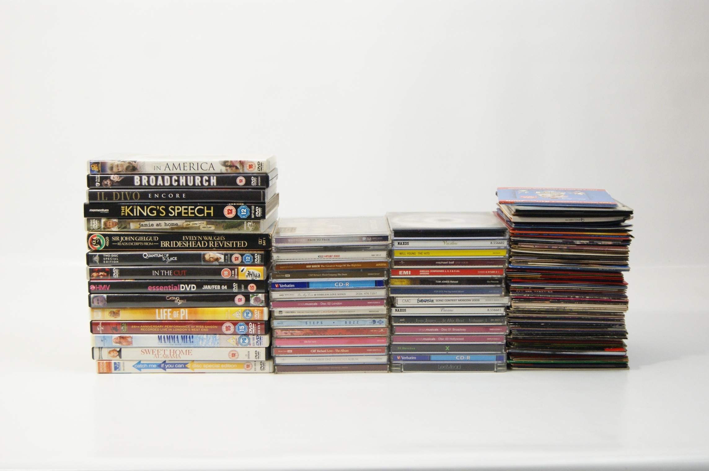 A Collection of DVDs and Compact Discs featuring Film, Television, and Musical Recordings