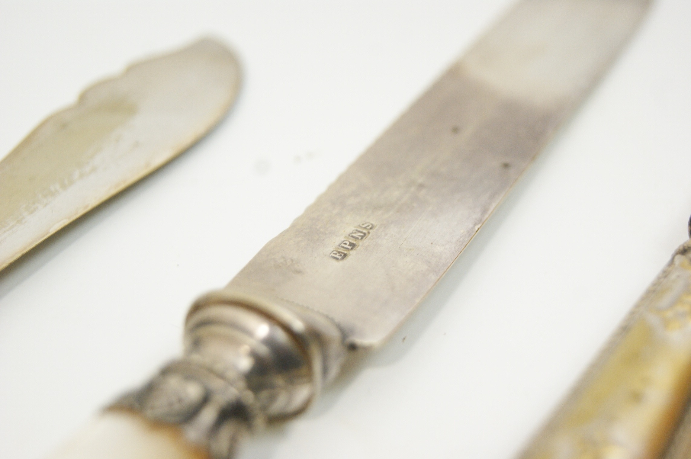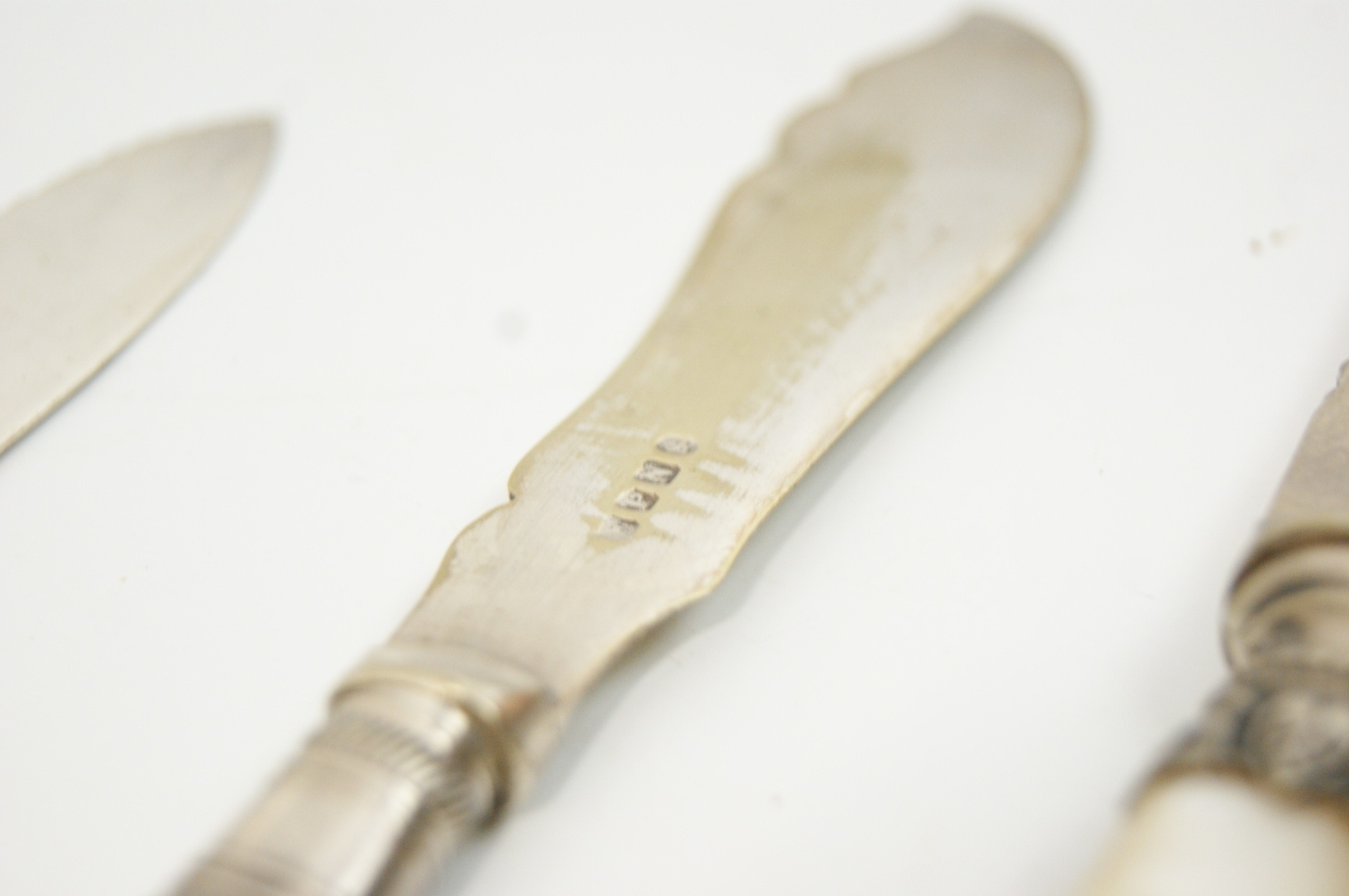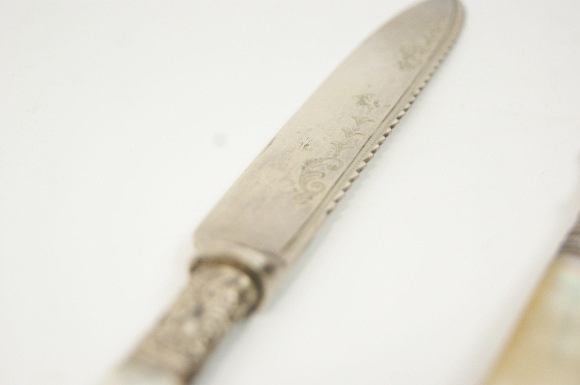 Antique Mother-of-Pearl Handled Butter & Fish Knives, Silver...