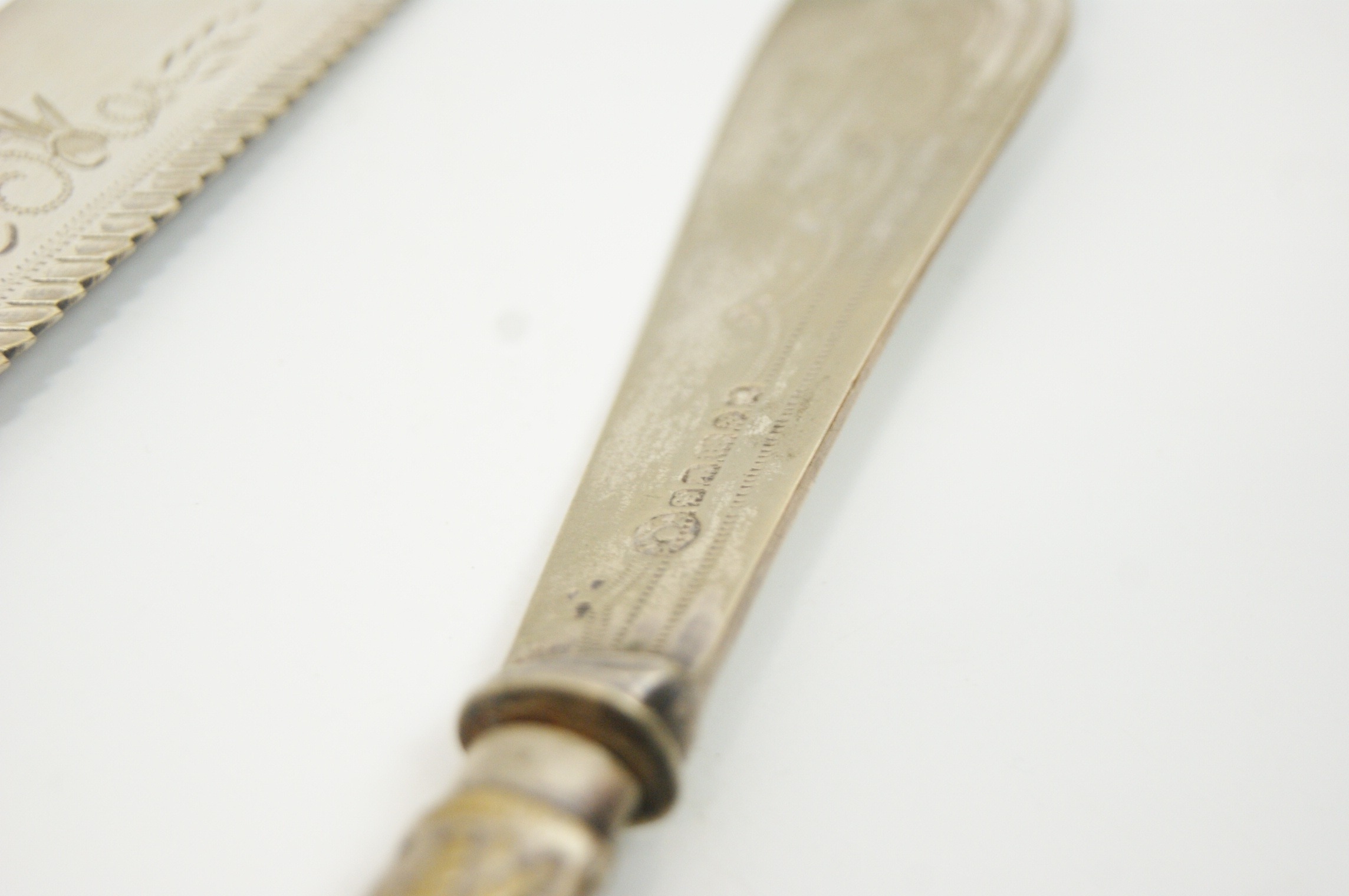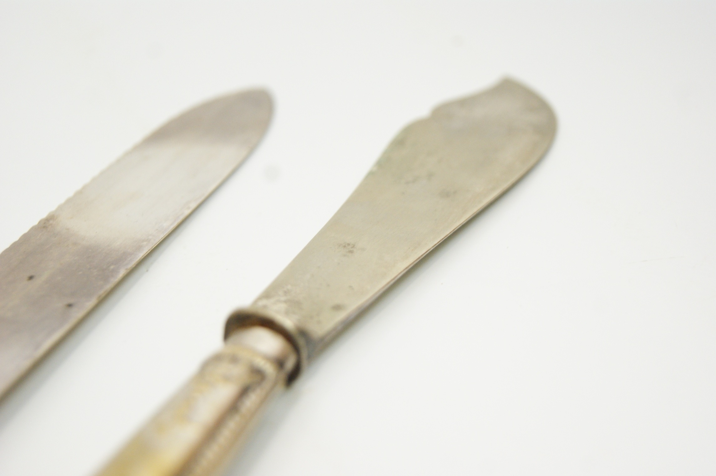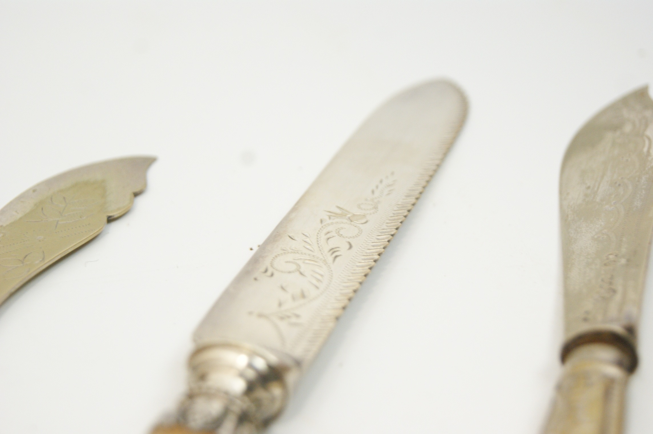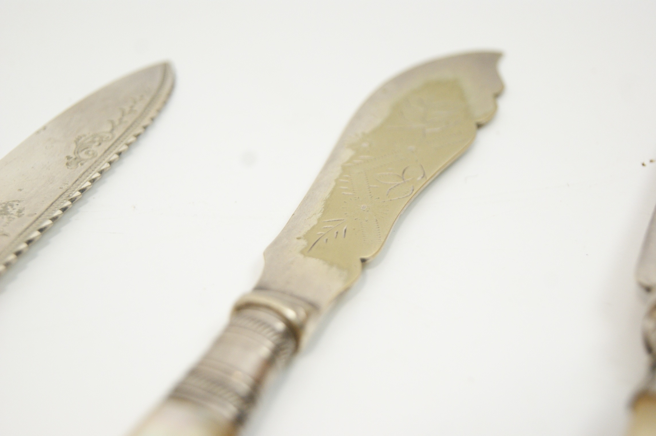 Antique Mother-of-Pearl Handled Butter & Fish Knives, Silver Plate, Victorian / Edwardian Tableware
