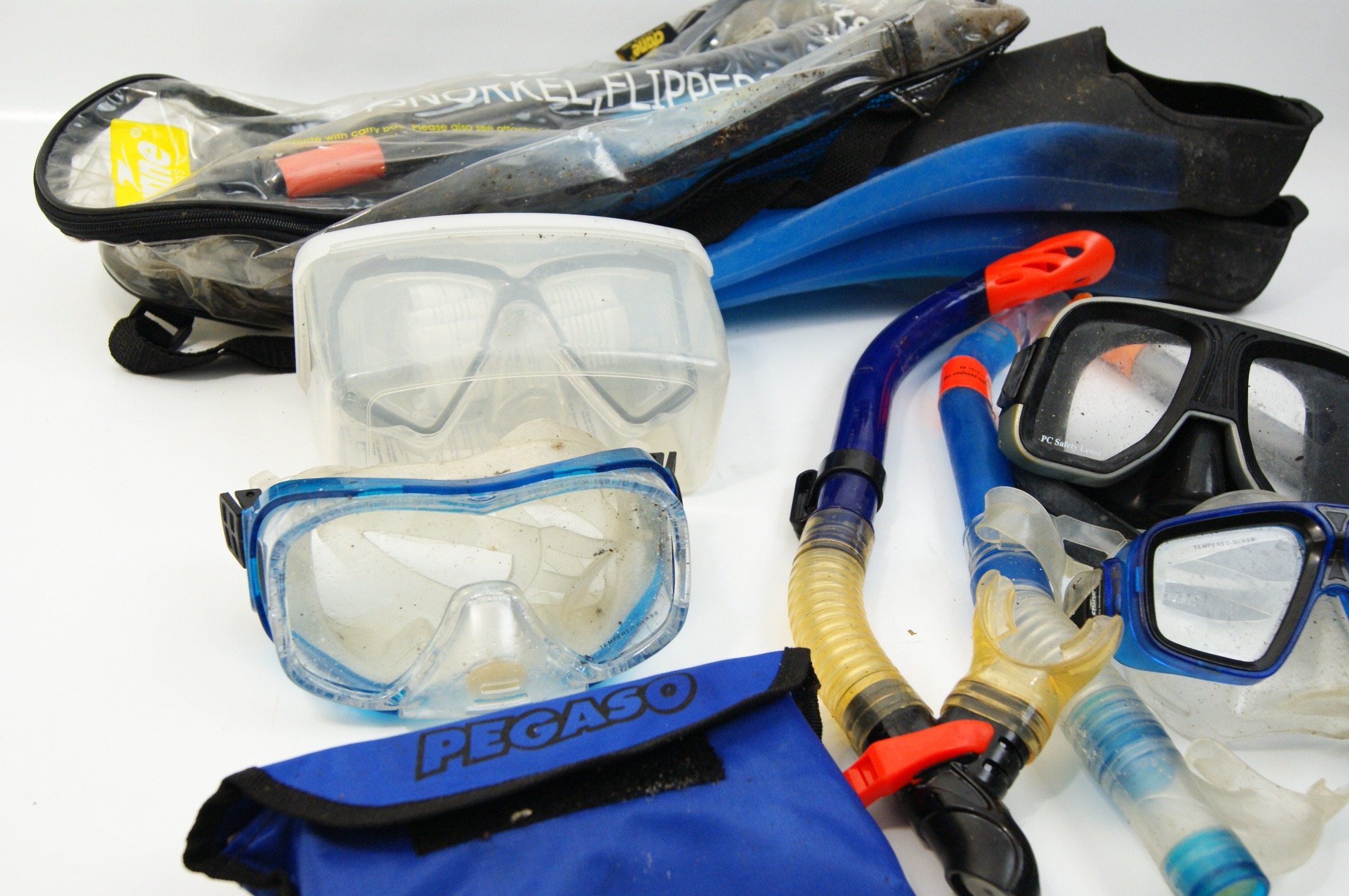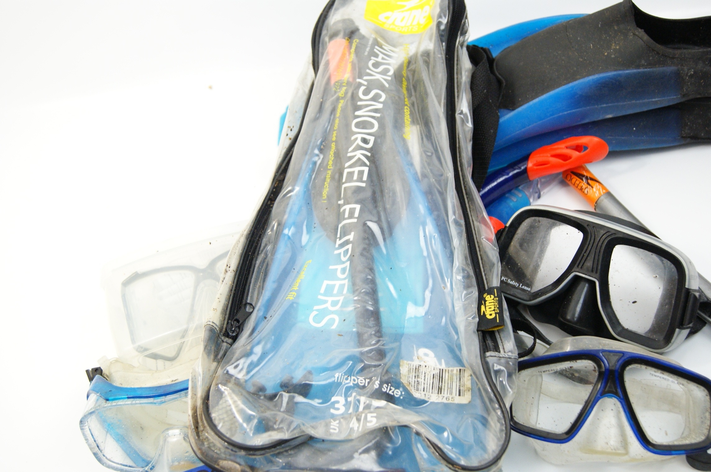 A Collection of Snorkeling Equipment including Speedo and Crane Sports