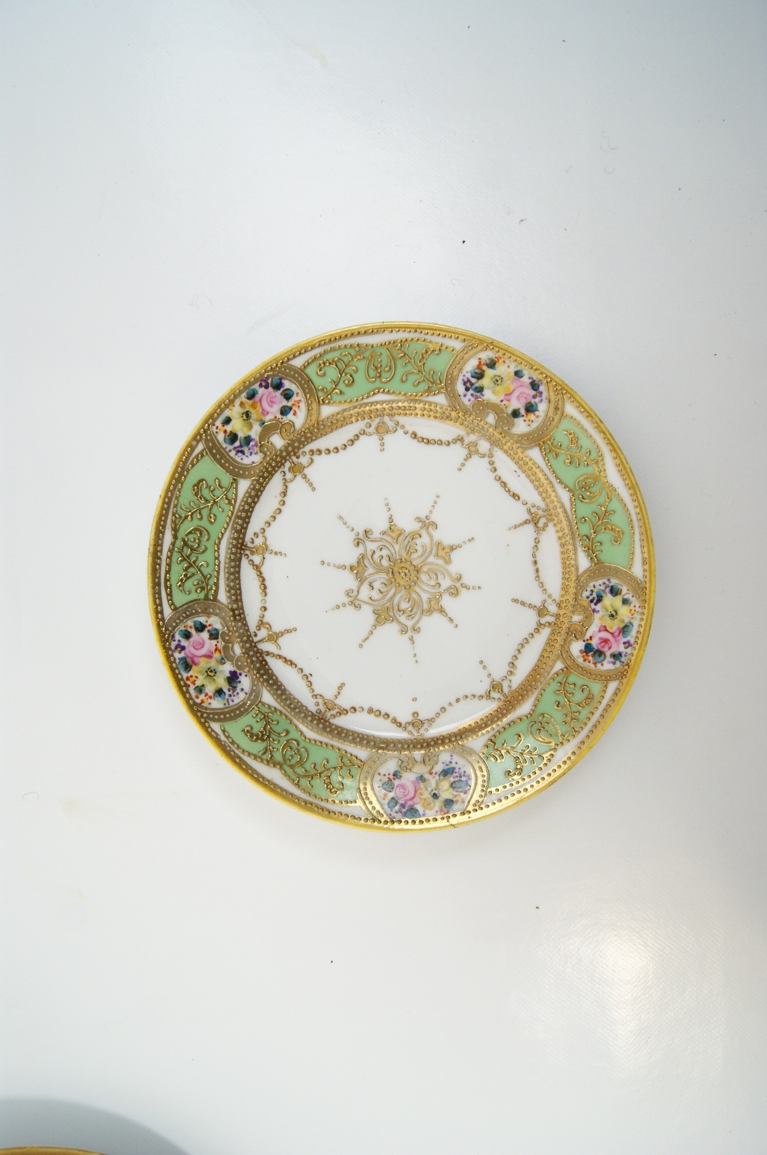 GDA Limoges Neoclassical Gilt and Floral Porcelain Plates