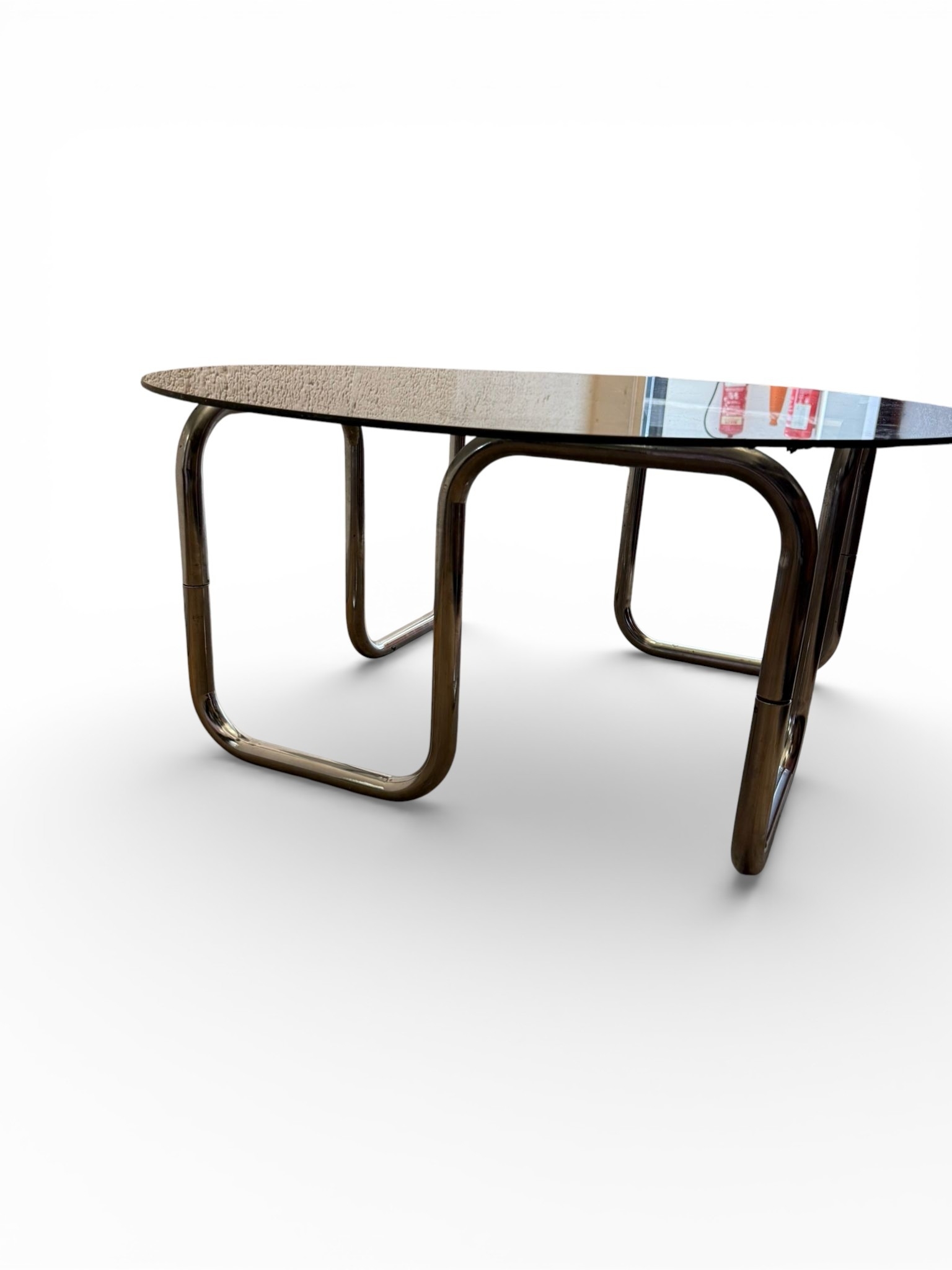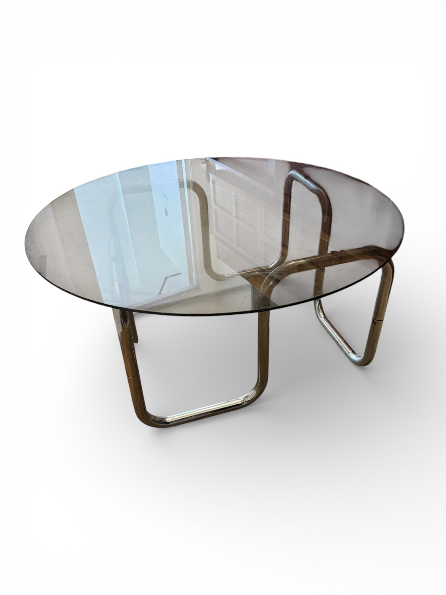 A Bauhaus Style Tubular Steel and Smoked Glass Coffee Table