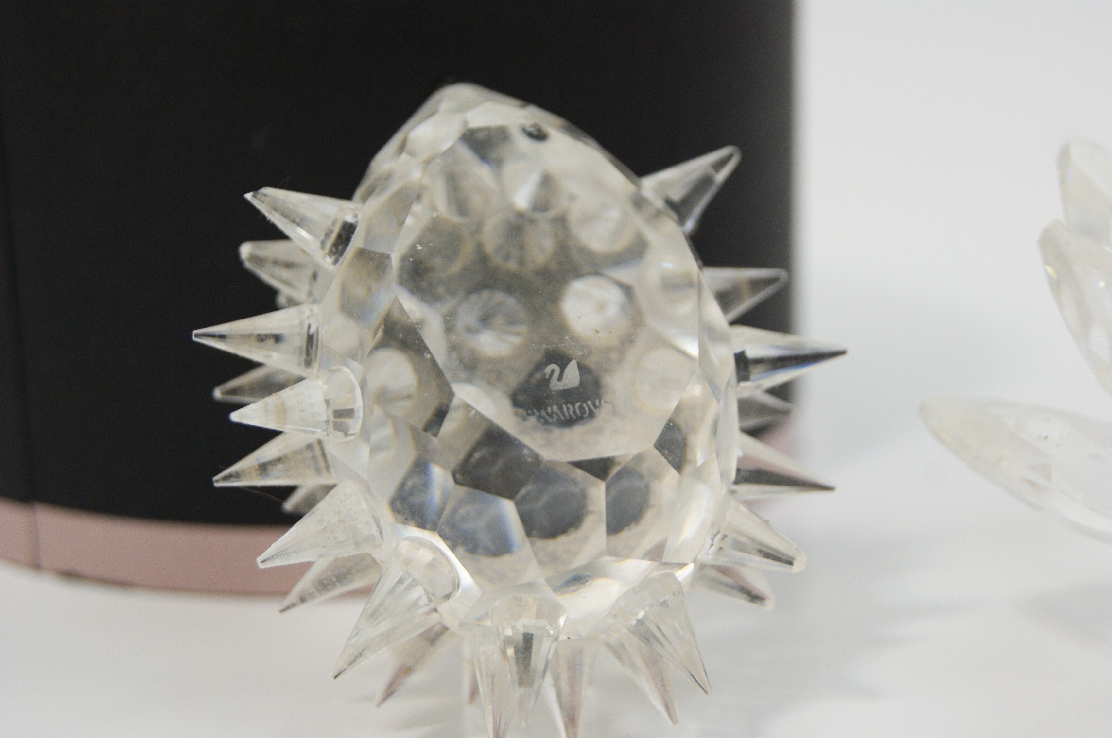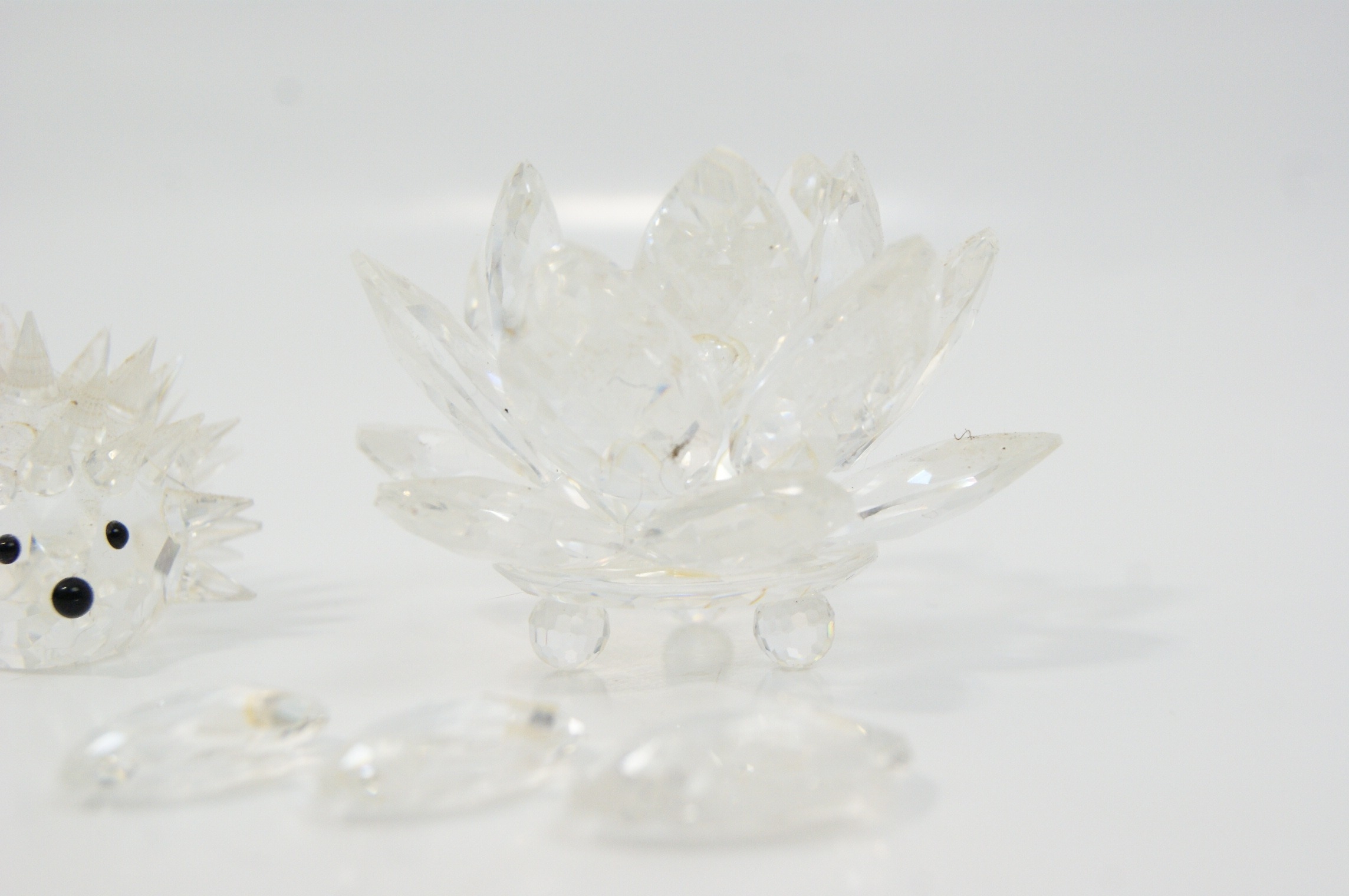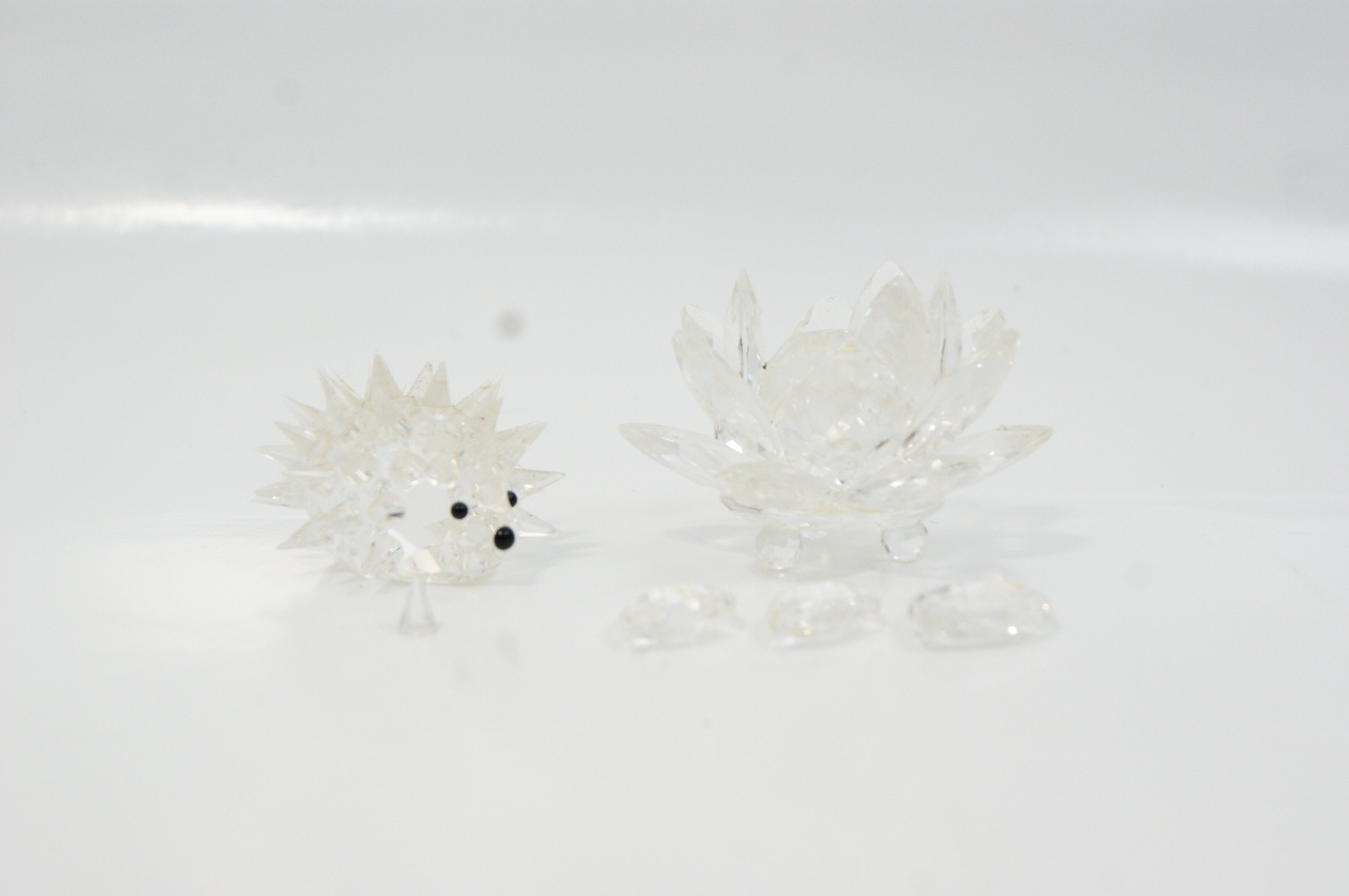 Swarovski Crystal Hedgehog and a Faceted Crystal Lotus Flower Figurine