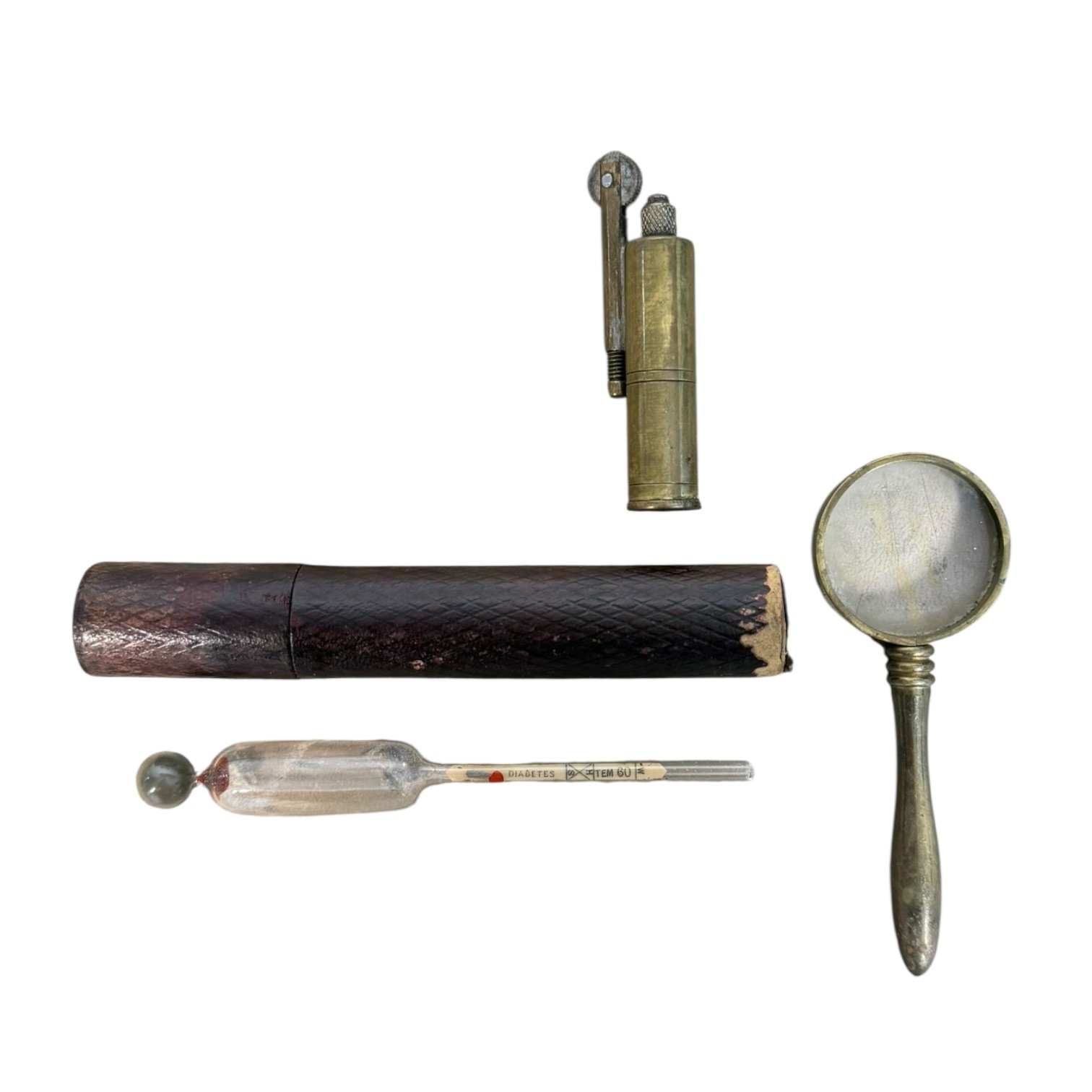 An Assortment of Vintage Brass and Glass Items including a Medical Instrument