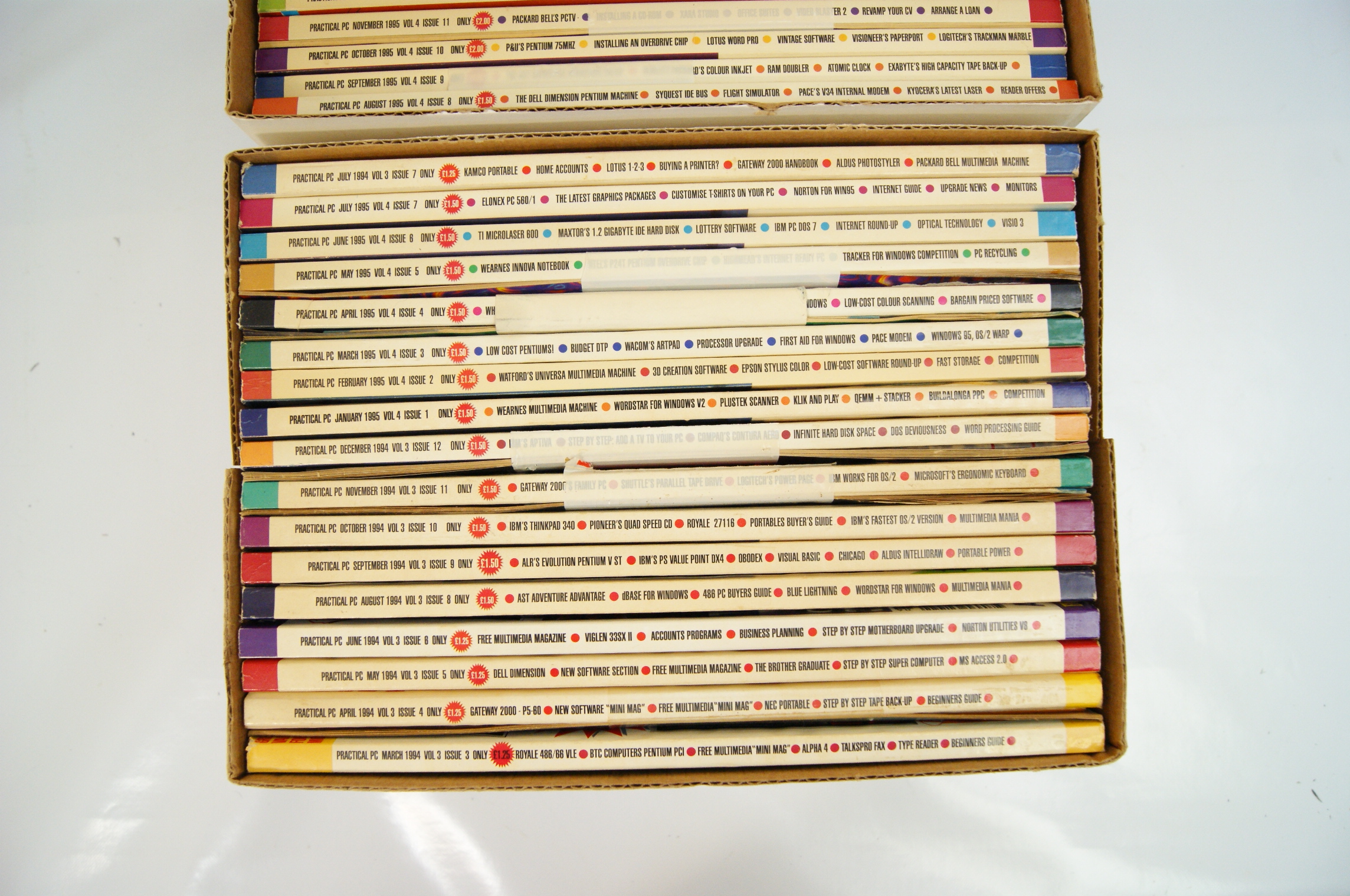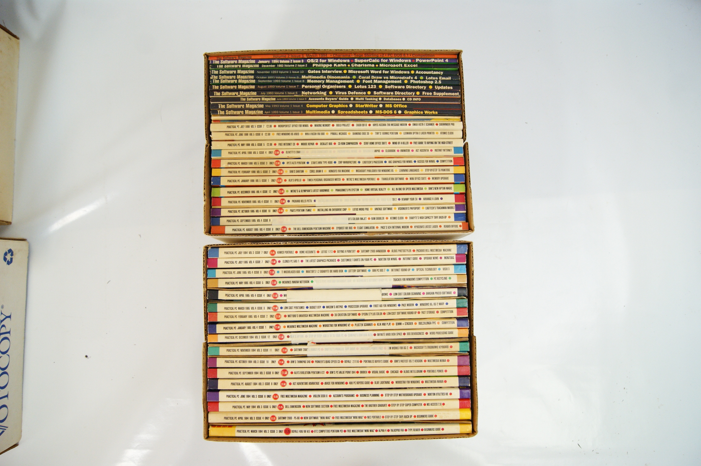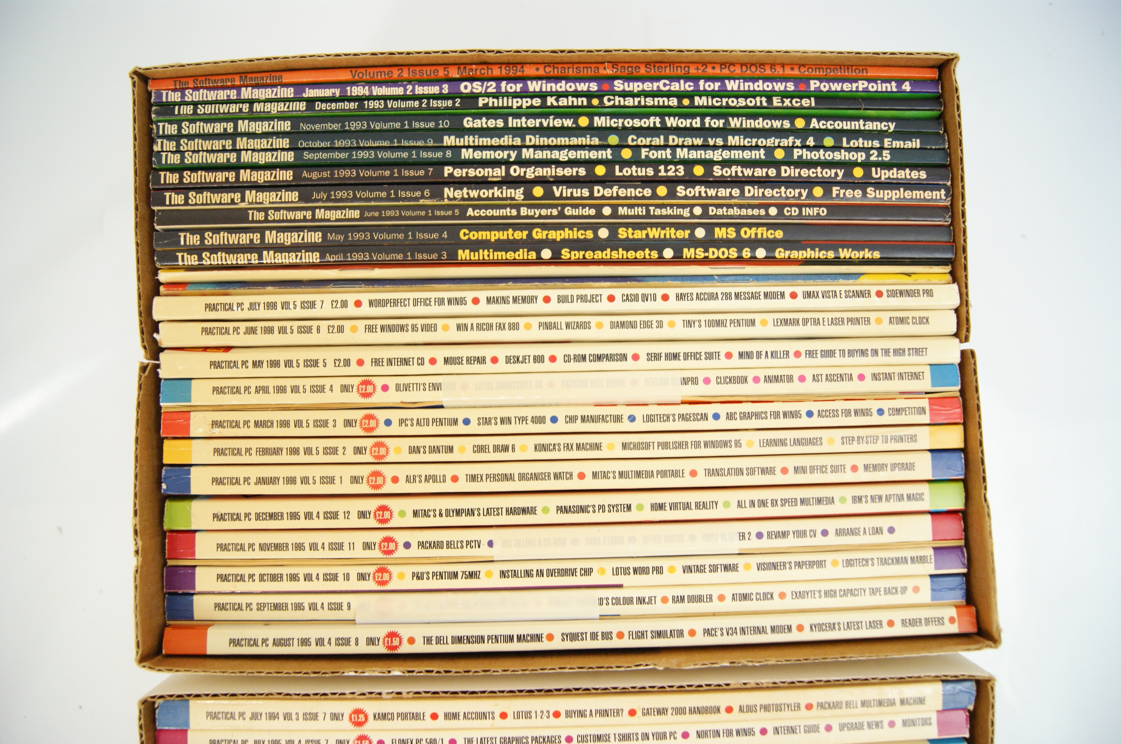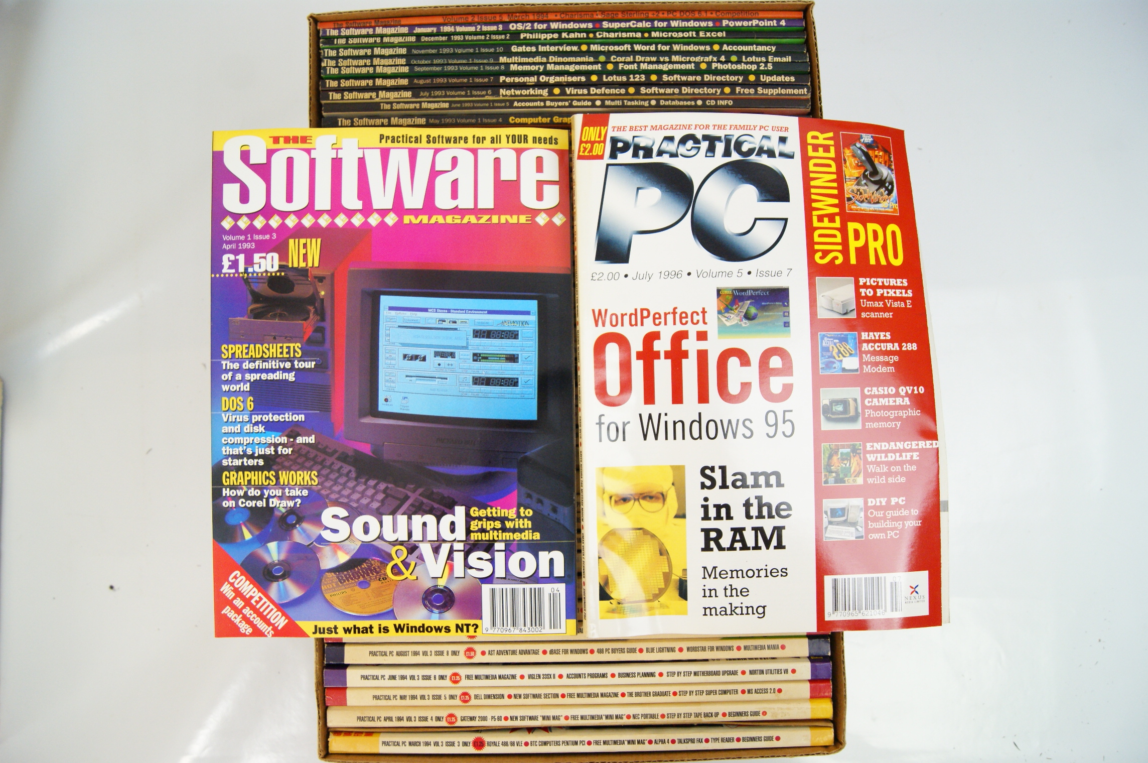 This collection comprises approximately 40 vintage computer magazines published in the United Kingdom between 1993 and 1996. The archive includes two primary titles: The Software Magazine and Practical PC. The Software Magazine portion includes approximately 11 issues: Volume 1, Issues 3, 4, 5, 6, 7, 8, 9, and 10; and Volume 2, Issues 2, 3, and 5. Editorial content covers topics such as MS-DOS 6, early multimedia technology, and the transition to Windows NT. The Practical PC portion includes approximately 29 issues: Volume 3, Issues 3, 4, 5, 6, 8, 9, 10, 11, and 12; Volume 4, Issues 1 through 12; and Volume 5, Issues 1, 2, 3, 4, 5, 6, and 7. Notable subjects include the launch of Windows 95, WordPerfect Office, and hardware reviews for Pentium-class machines. Each issue is staple-bound with colour illustrated paper wraps and features original UK retail pricing.