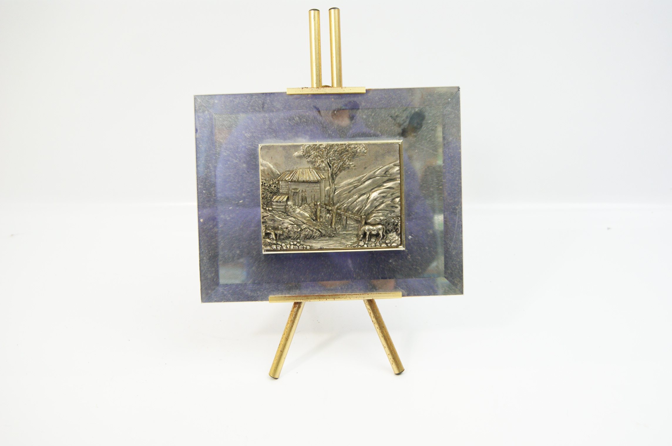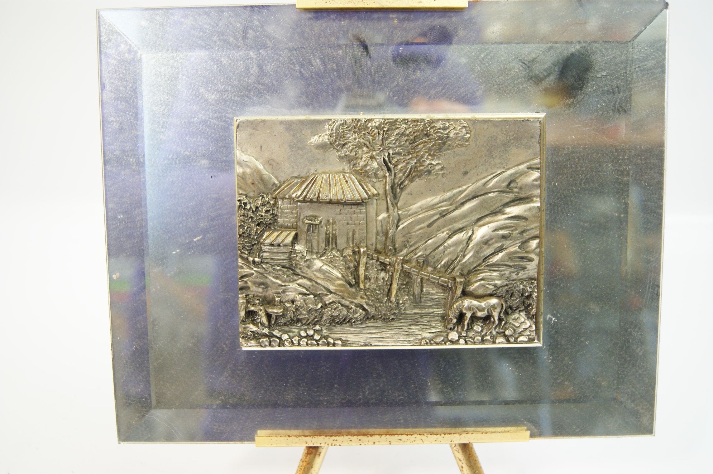 A Hathaway International Silver-Toned Metal Relief Plaque on Bevelled Glass with Easel