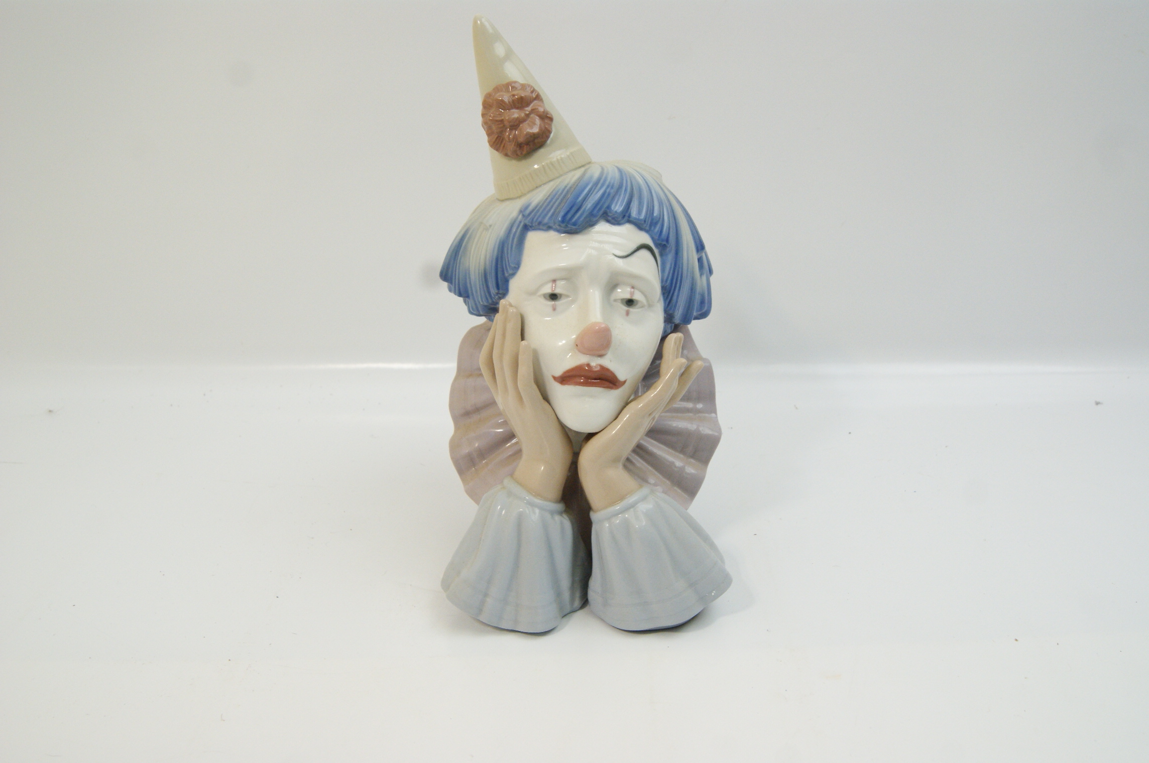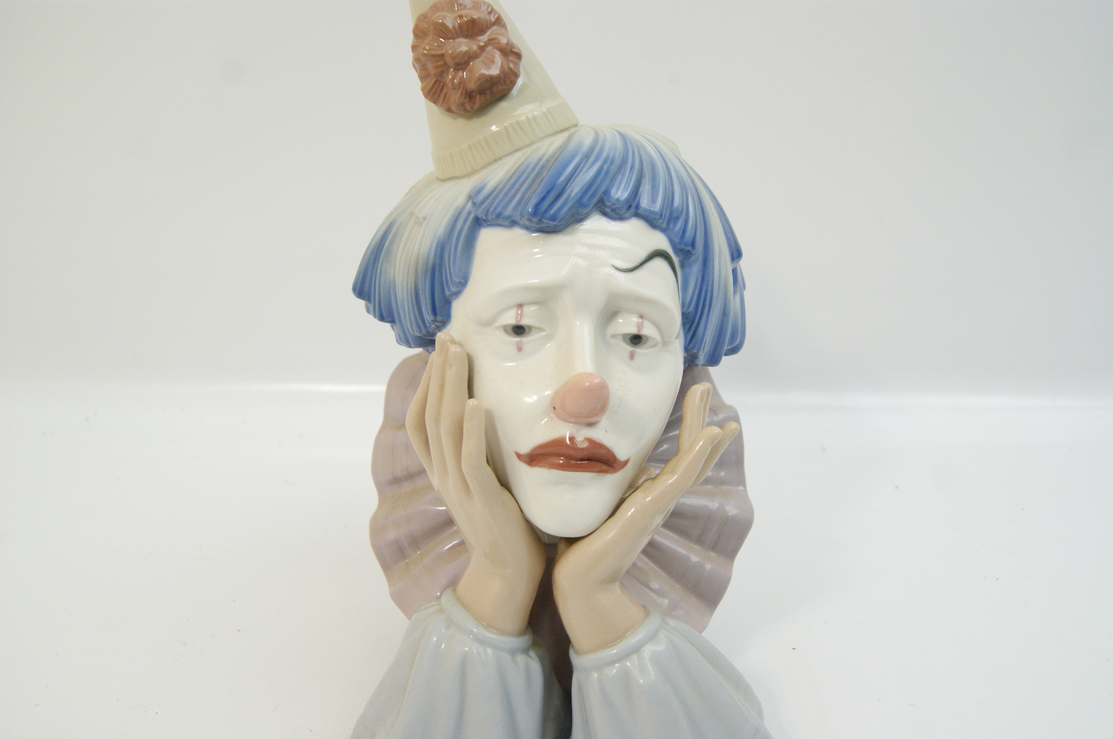 Lladro Pensive Clown Porcelain Bust Model 5139