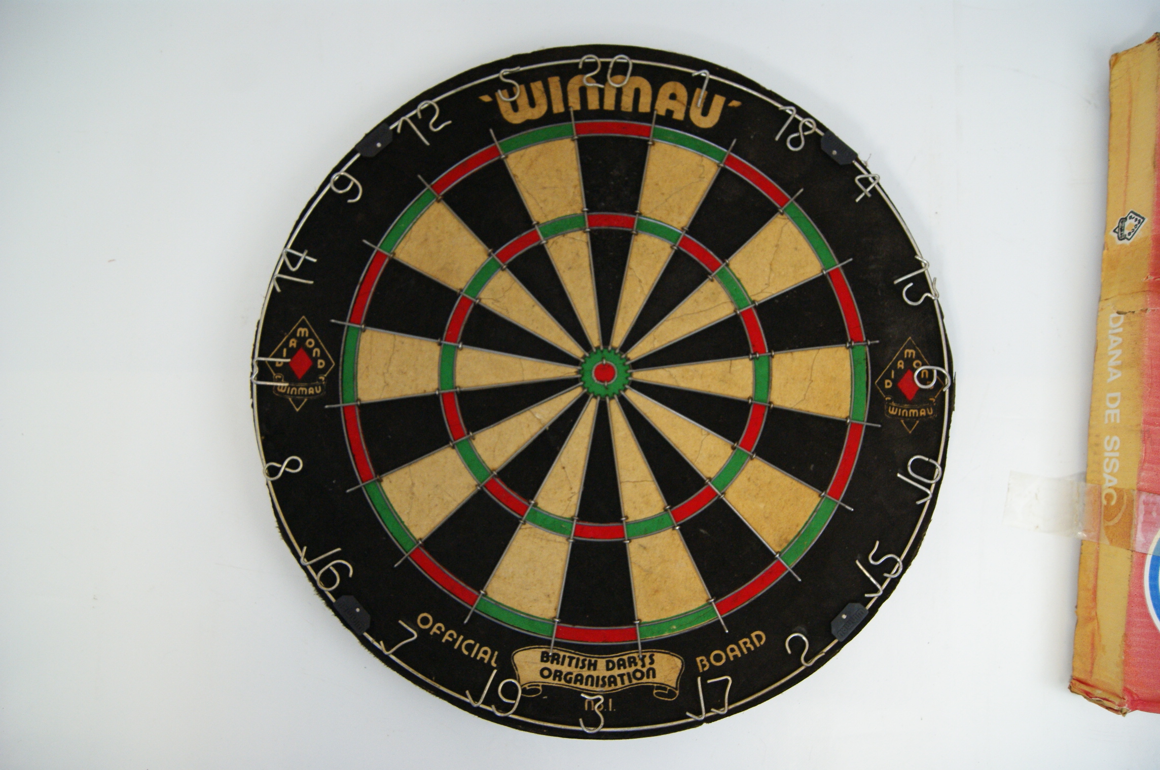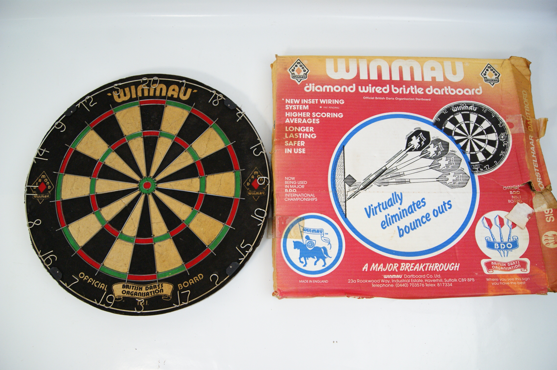 A Vintage Winmau Diamond Wired Bristle Dartboard with Original Box